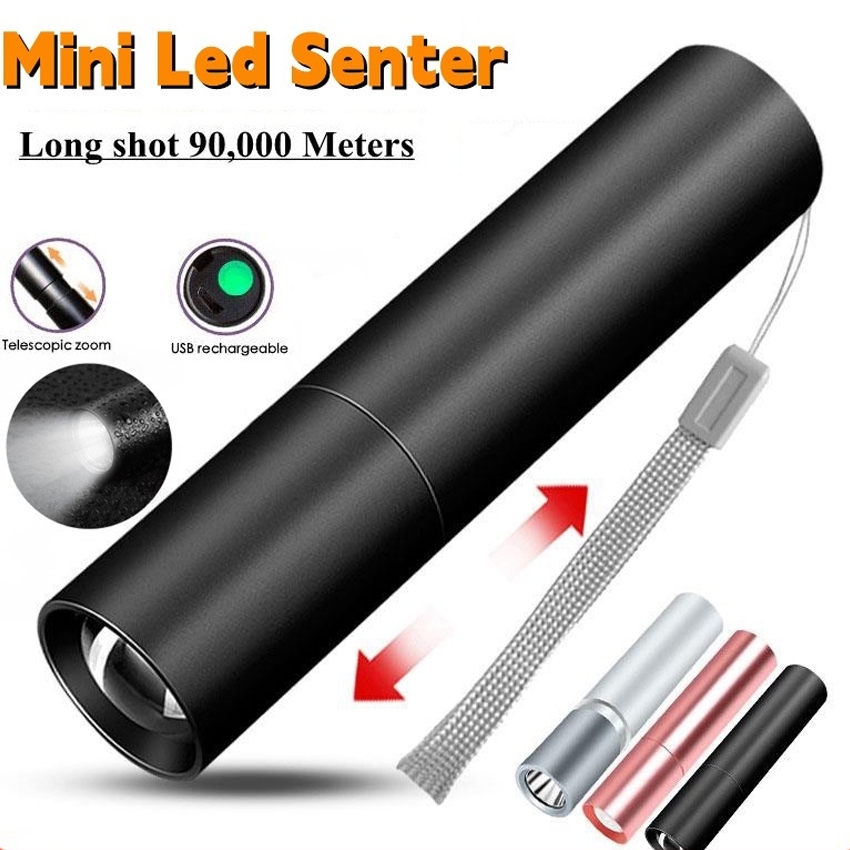 Senter LED mini flashlight Lampu Senter Led Mini Portable Super Terang Jarak Jauh Usb Portabel Mini Isi Ulang Lampu Pencahayaan Luar
