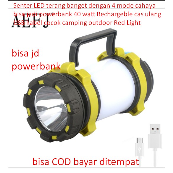 Senter LED terang banget dengan 4 mode cahaya bisa jadi powerbank 40 watt Rechargeble cas ulang USB