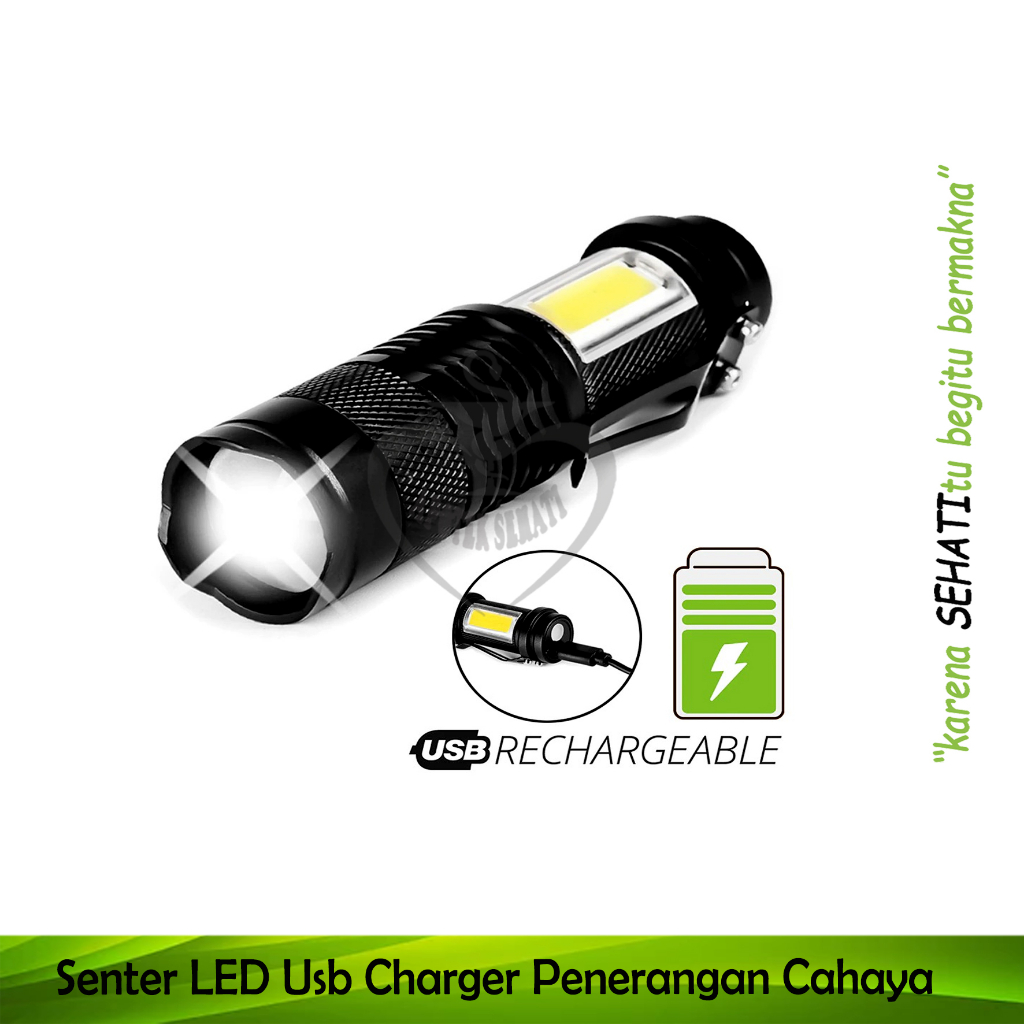Senter Led Mini Zoom Super Terang Usb Recharger