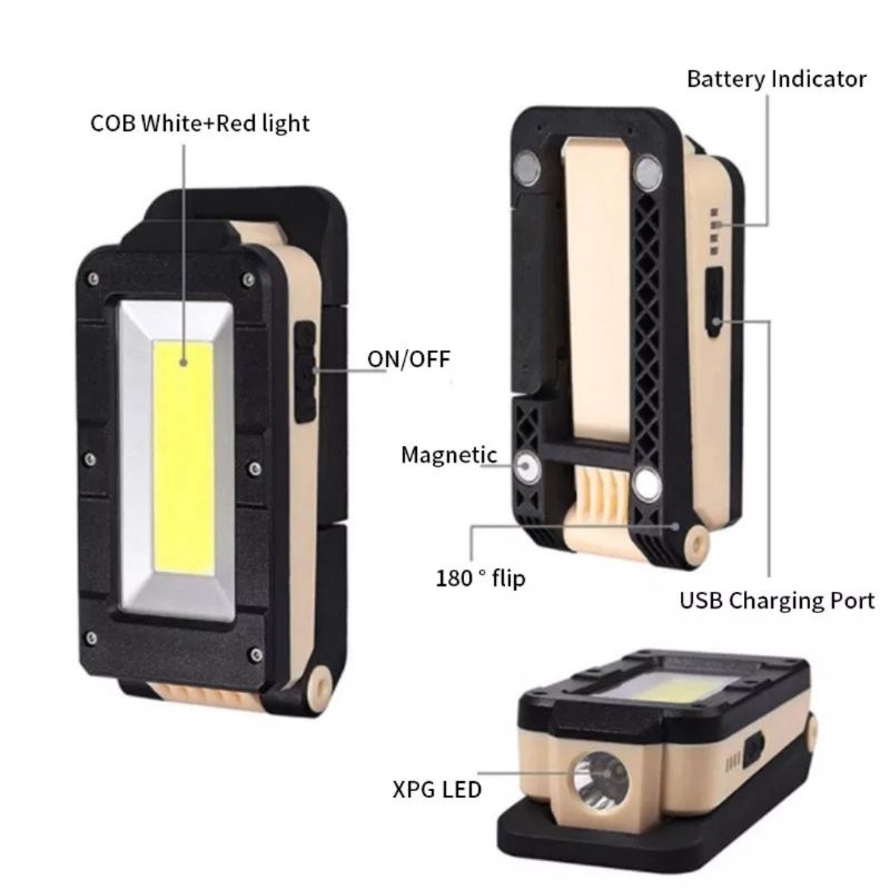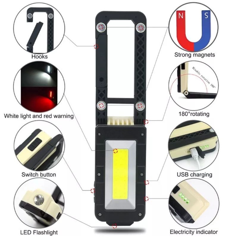 Senter Magnetik LED COB Lampu Inspeksi Dapat Dilipat