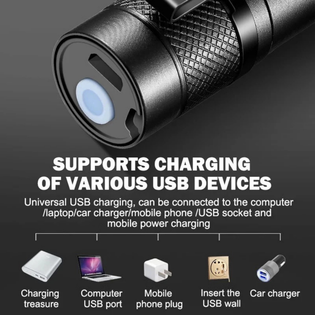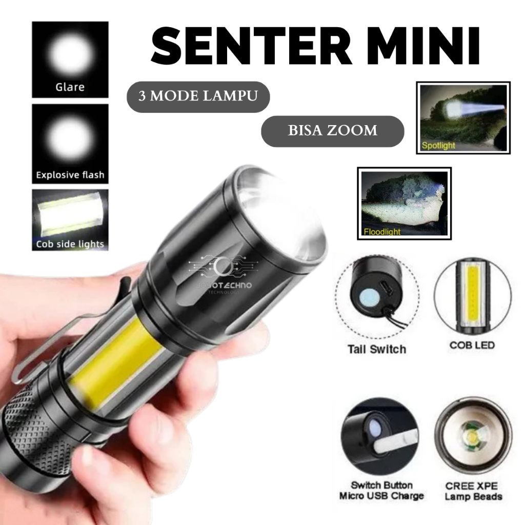 Senter Mini LED COB Portable Rechargeable SUPER TERANG dengan 3 Mode dan tahan air