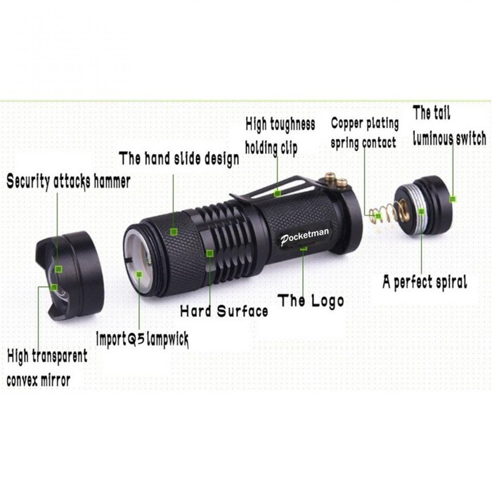 Senter Police Pocketman Senter LED Flashlight 2000 Lumens Waterproof 02