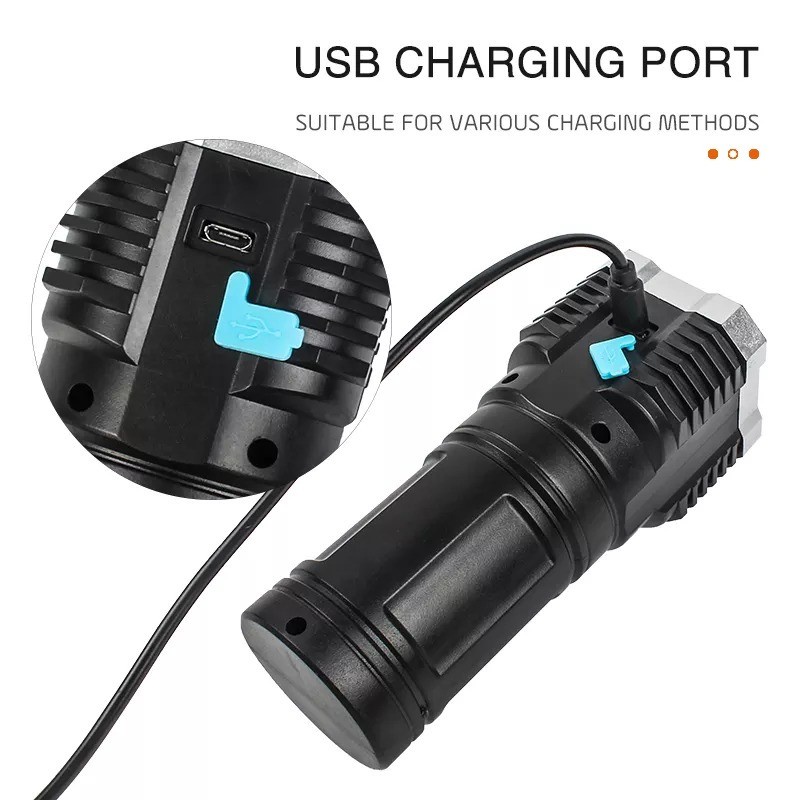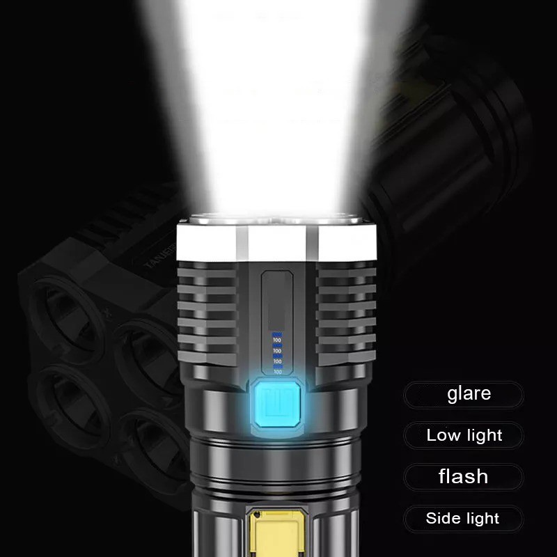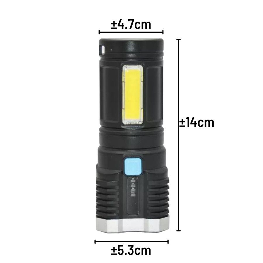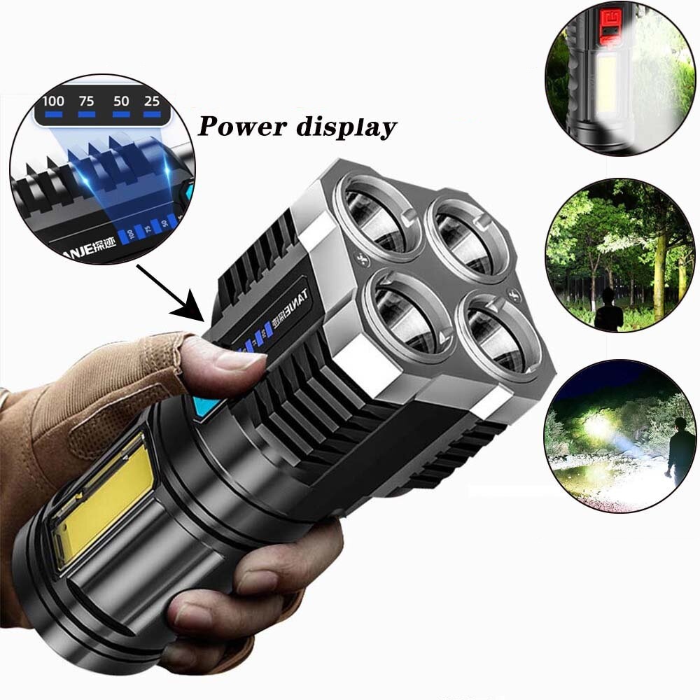 Senter Portable 4 LED + COB Light Super Terang / Penerangan 4 Mode Lampu Rechargeable Camping Piknik