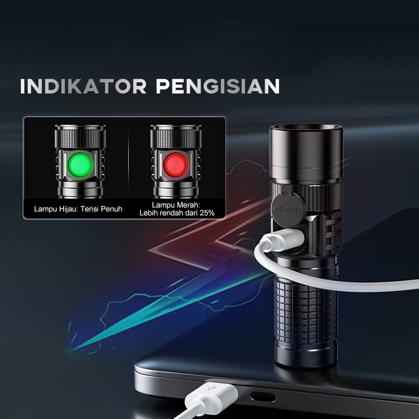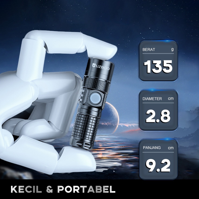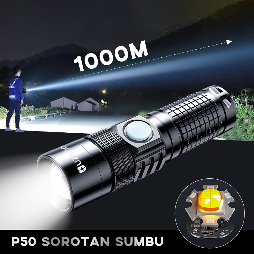 Senter Super Mini Jarak Jauh 1000M Lampu Senter LED Senter Fokus Teleskopik Senter Isi Ulang Portabel Luar Ukuran Saku Senter Tahan Air untuk Mendaki Berburu Berkemah