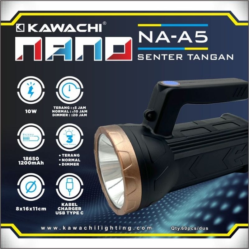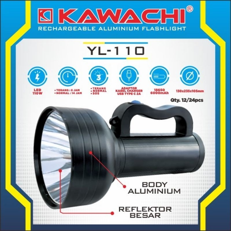Senter Tangan Tenteng Multifungsi (Jumbo Body Aluminium) 110Watt 110W & 10Watt / Senter Tangan Kawachi / Senter Ronda Led Super Terang / Senter Charger Tahan lama / YL 110 - NA A5 / Kawachi