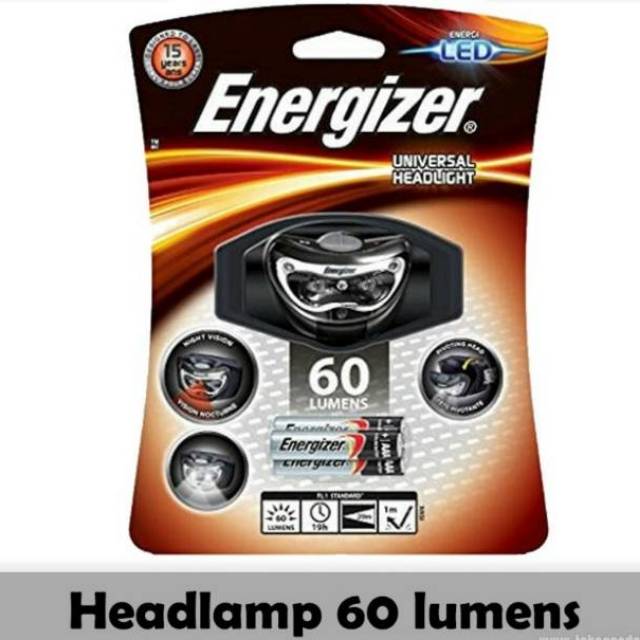 Senter kepala energizer 3 led / headlamp energizer / headlight / lampu kepala / energizer 60 lumens