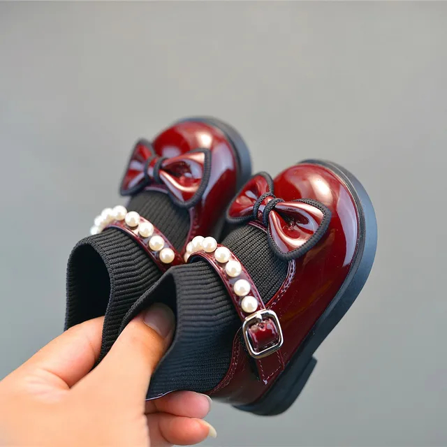 Sepatu Balita Perempuan Ringan & Anti Licin Sepatu Anak Perempuan Docmart Style Pita Mutiara Cantik