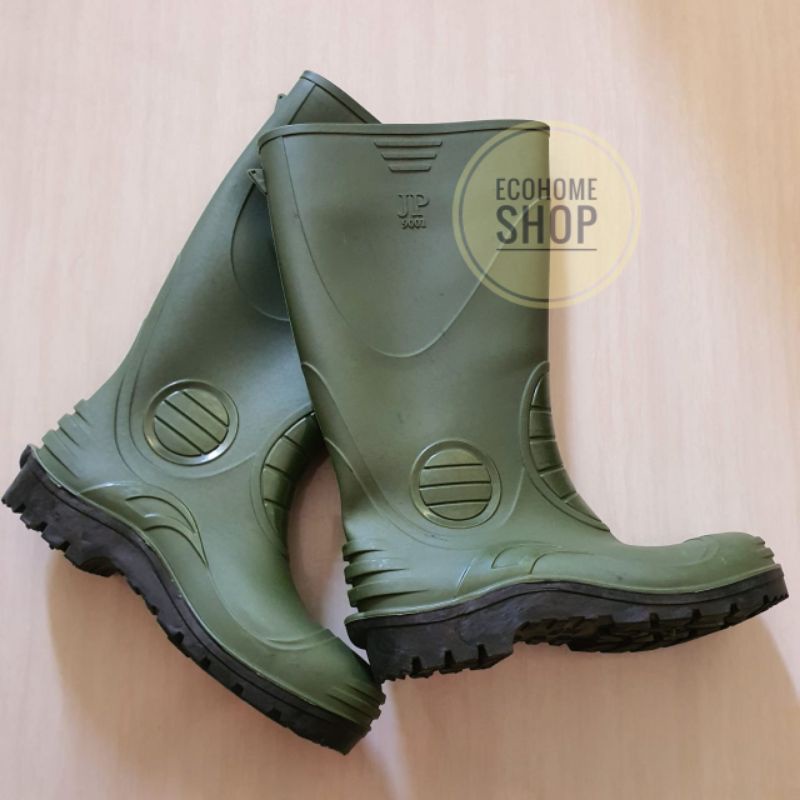 Sepatu Boot proyek Hijau tapak Hitam Tinggi Karet anti air bot safety APD Covid 19