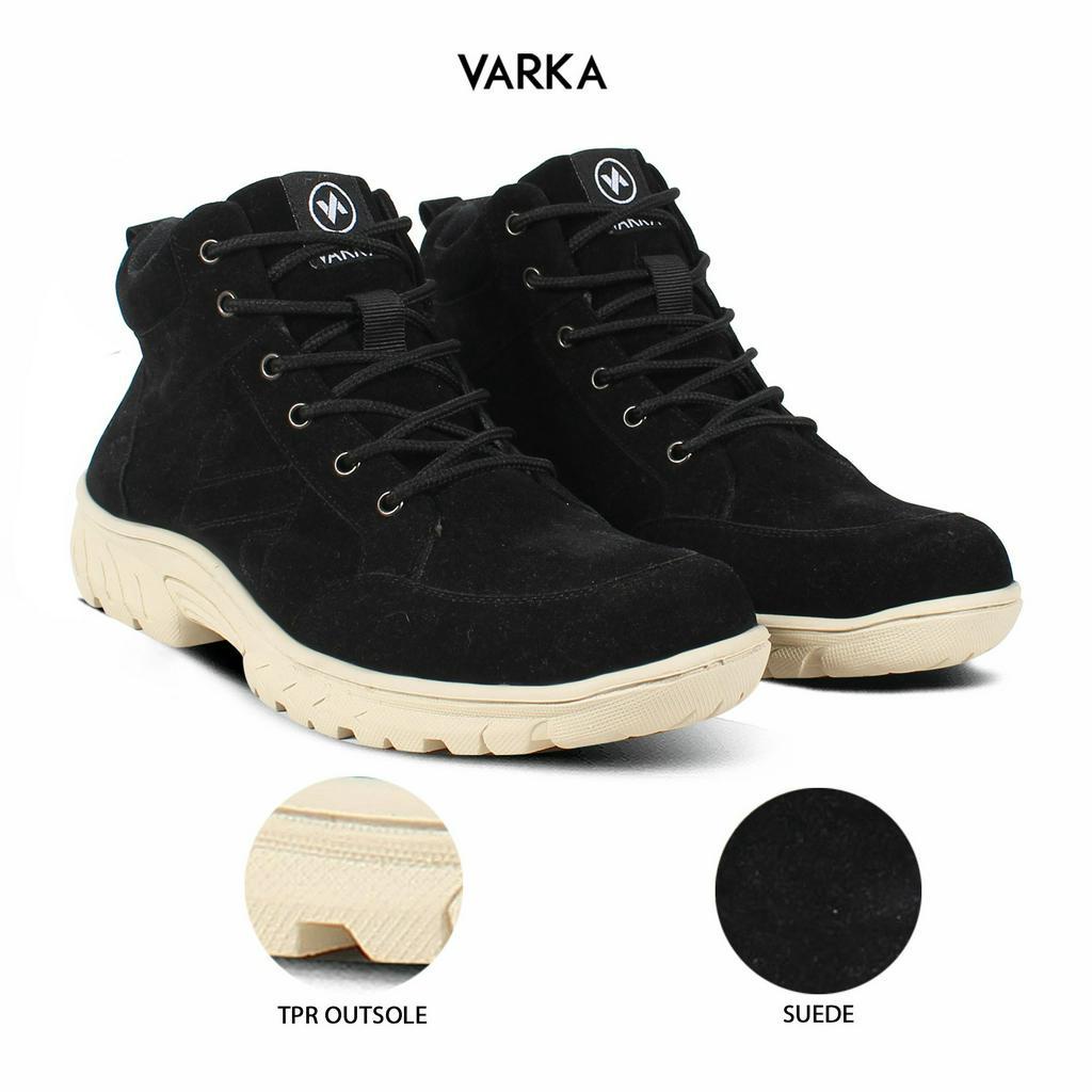 Sepatu Boots Pria Terbaru V 6676 Brand Varka Sepatu Kasual Kerja Kuliah Sepatu Motor Trekking Outdoor Berkualitas - Hitam