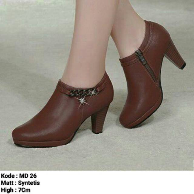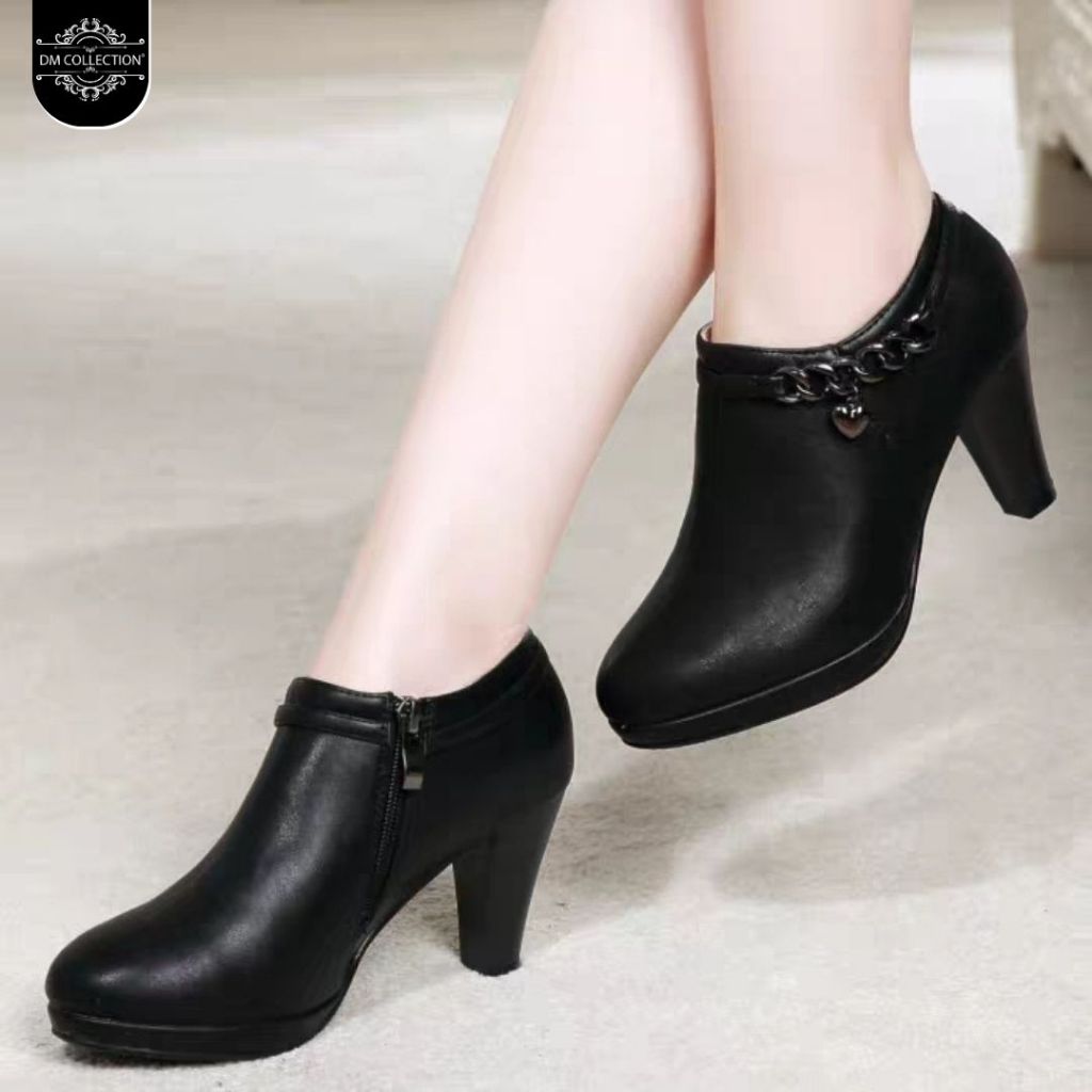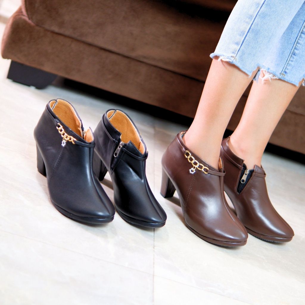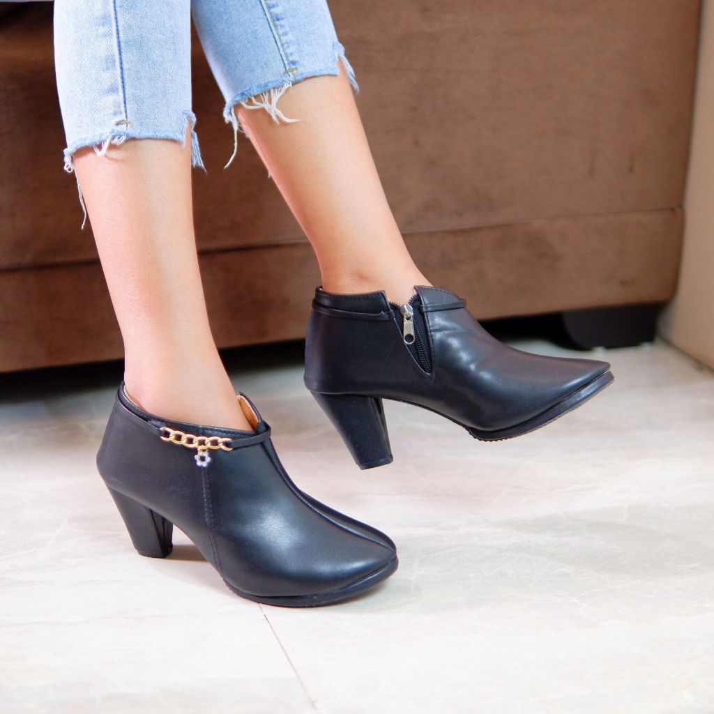 DM SHOPP - Sepatu Boots Wanita Bahan Sintetis Kombinasi Reseting Samping rantai Emas Gantungan Bunga MD 26