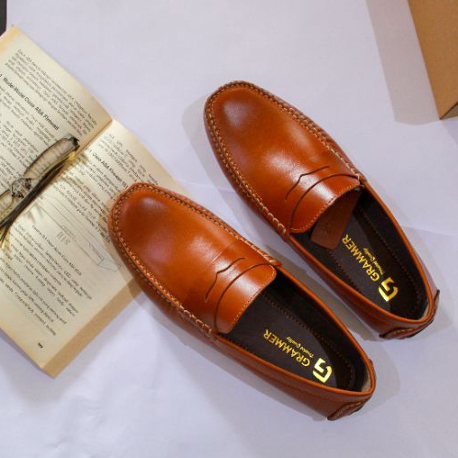 Sepatu Casual Pria Kulit Pullup Asli Premium Sepatu Moccasin Loafer Sol Tanam Grammer