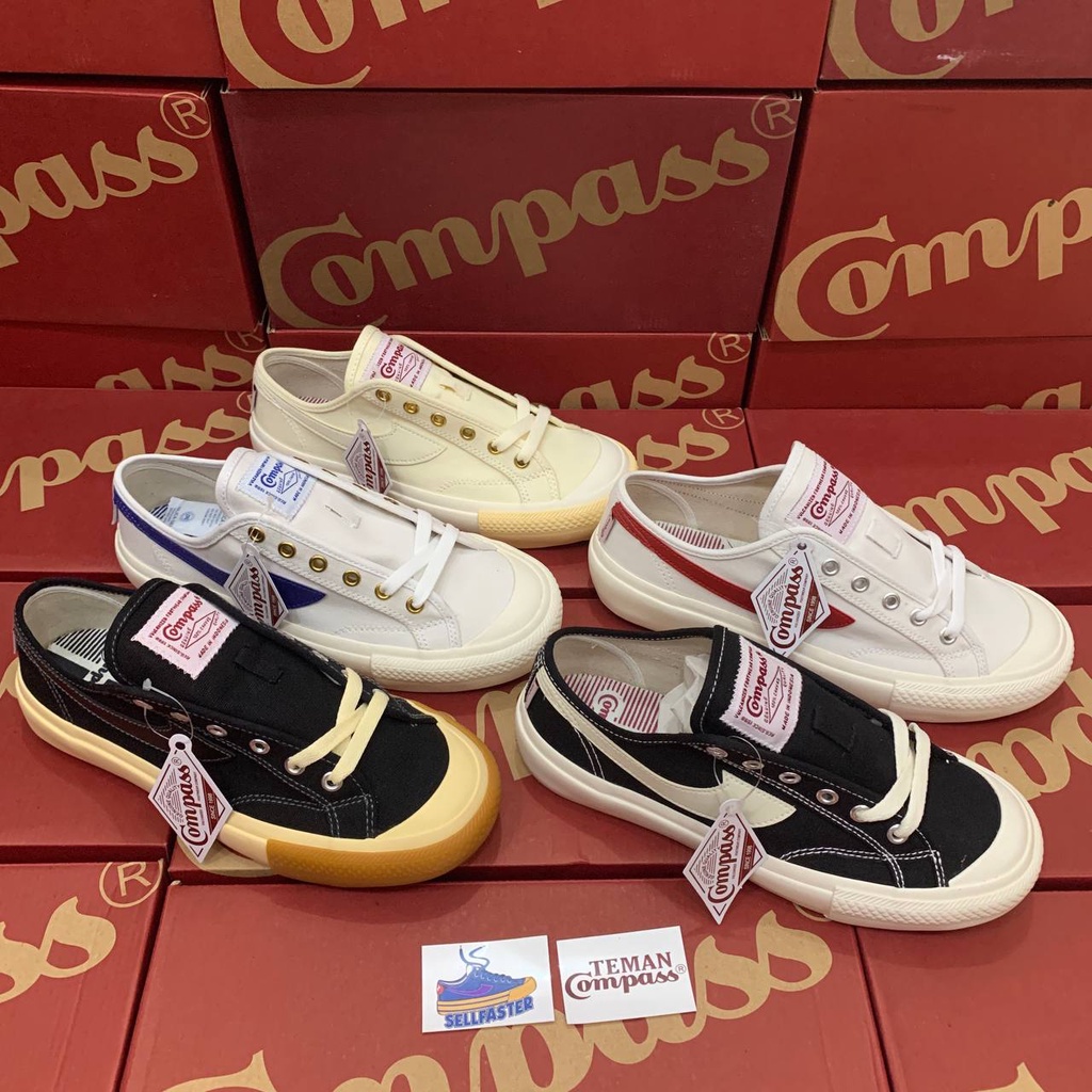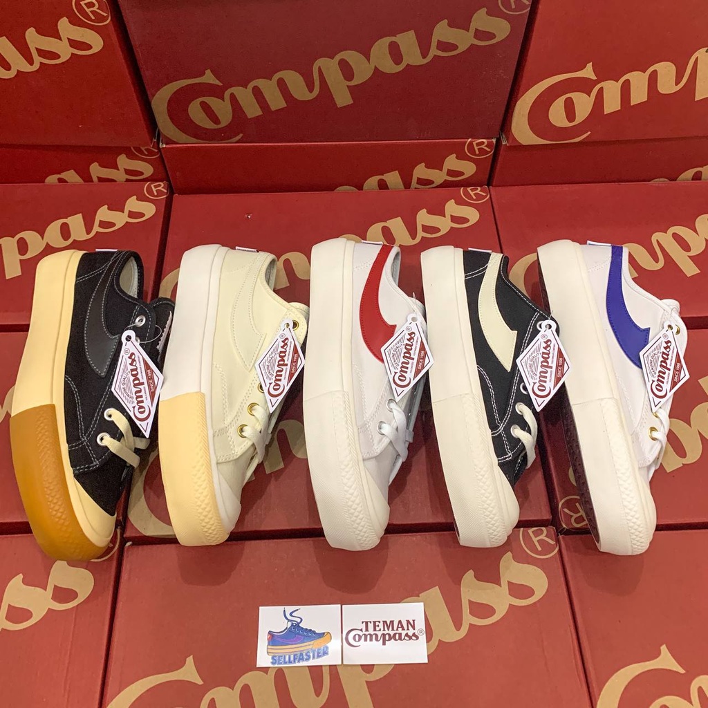 Sepatu Compass Gazelle Low Black White / White Red / Blue Sky / Cream / White Blue / Black Gum Murah Original 35 - 45