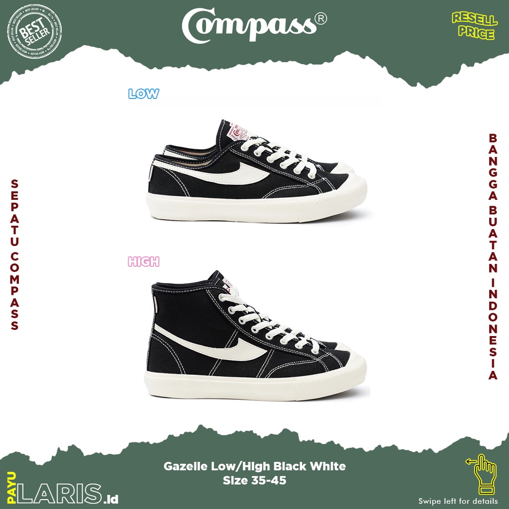 Sepatu Compass Gazelle Low/High Black White (ORIGINAL)