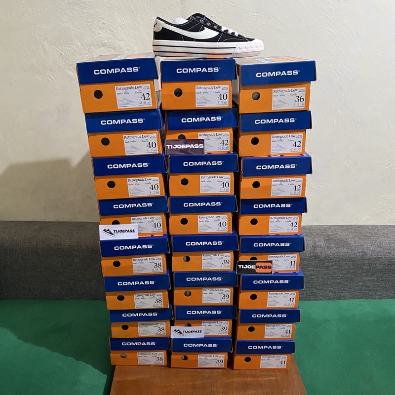Sepatu Compass Retrograde Black White Low Original