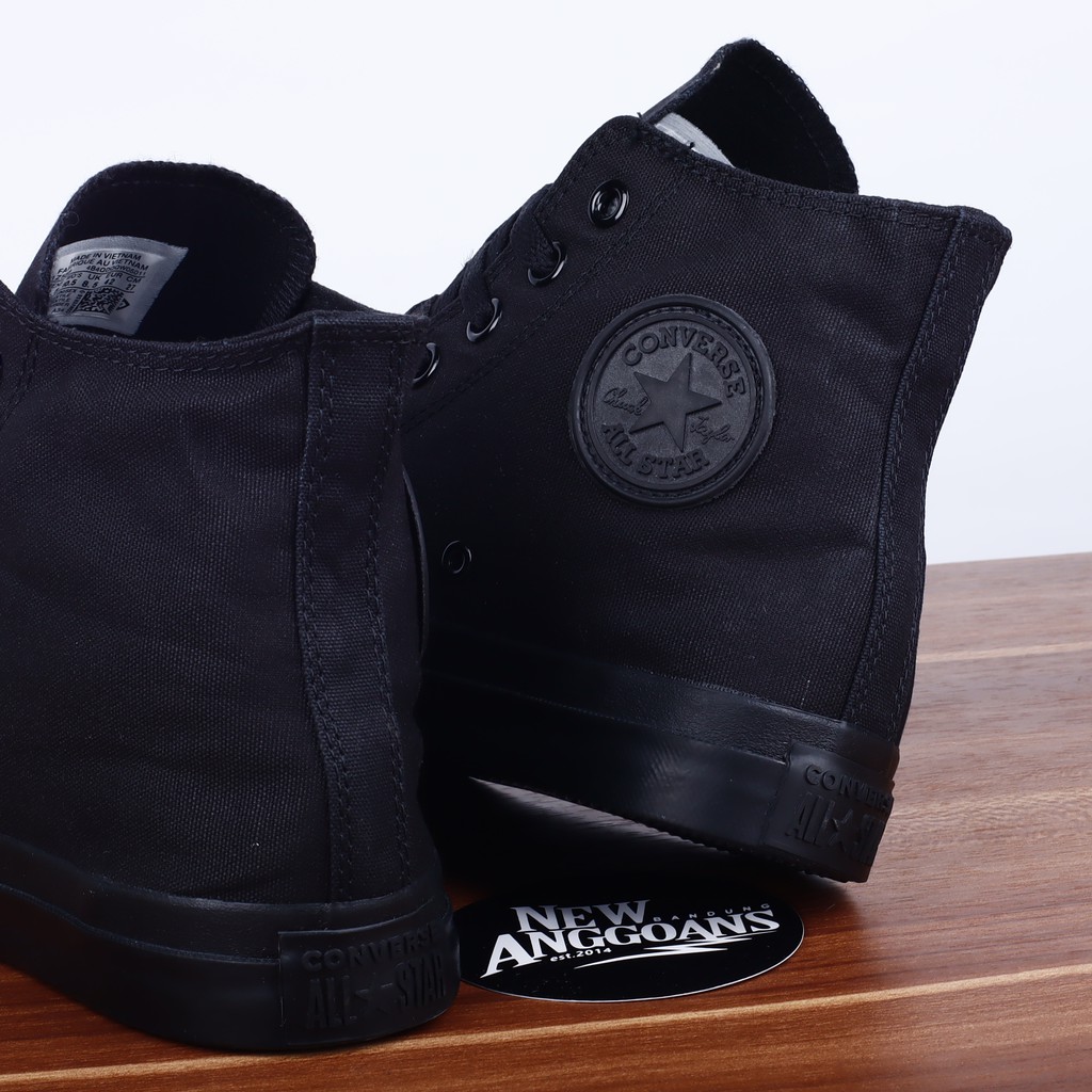 (Bonus Kaos Kaki+Paperbag+Tali Tambahan) Sepatu Converse CT Chuck Taylor All Star Classic Basic All Full Black Hitam Polos High