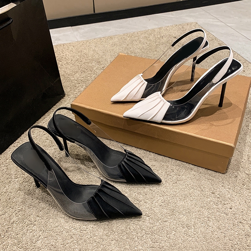 Sepatu Hak Tinggi 9cm Stiletto High Heels Wanita Perempuan Import Terbaru Hitam Kantor Kerja Pesta Transparan Premium Murah Gaya Korea Strap Slingbacks - Ukuran 34 35 36 37 38 39 40