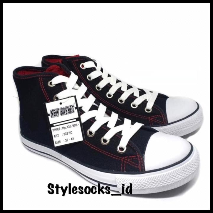 Sepatu Nb New Basket Hitam Putih Merah (Sepatu Sekolah Warior)