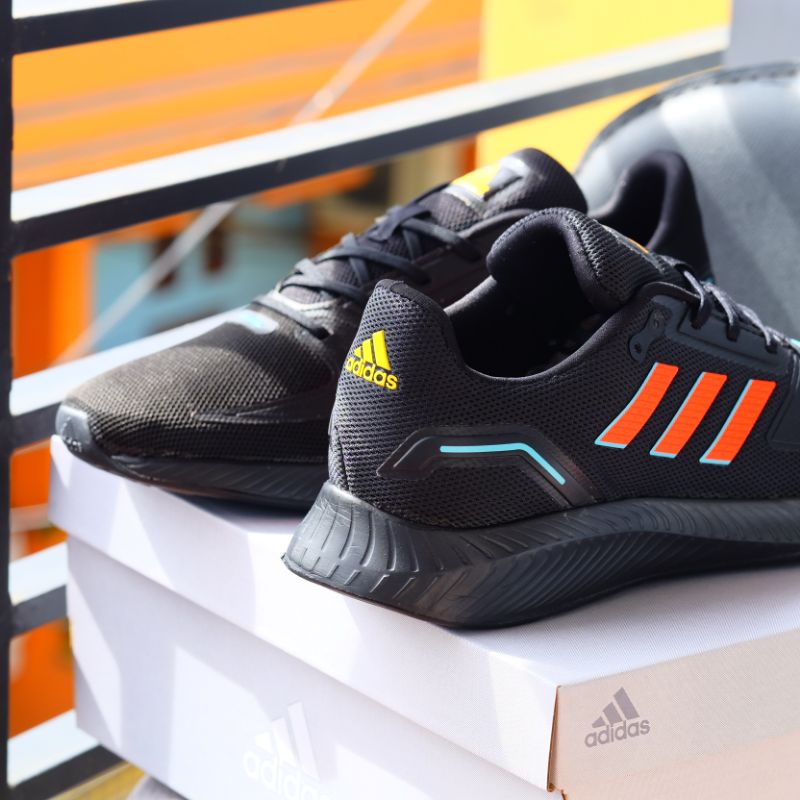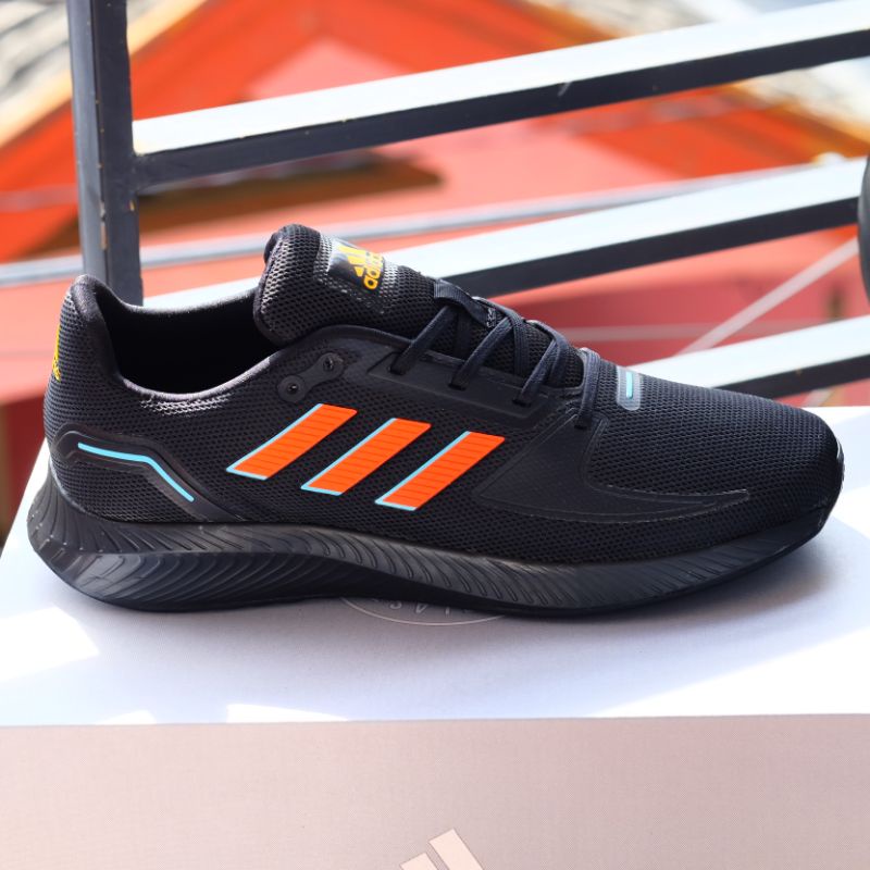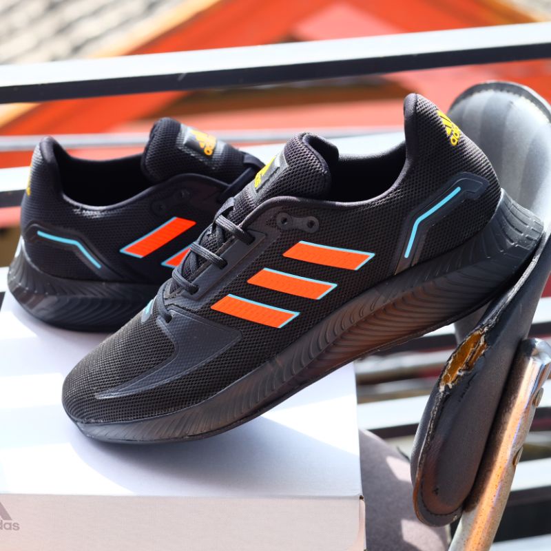 Sepatu Olahraga Pria Wanita Adidas Run Falcon 2.0 Full Black Orange | Sepatu Running | Termurah