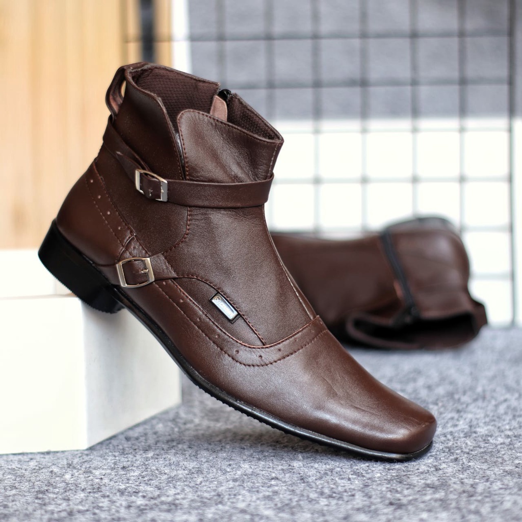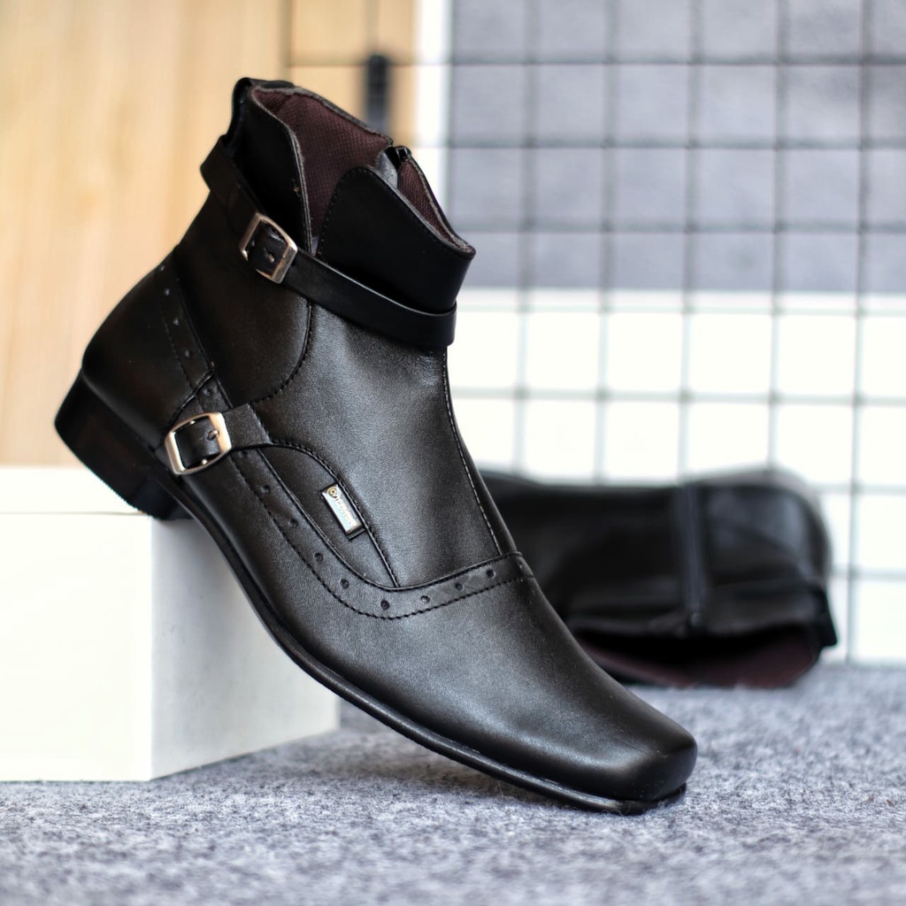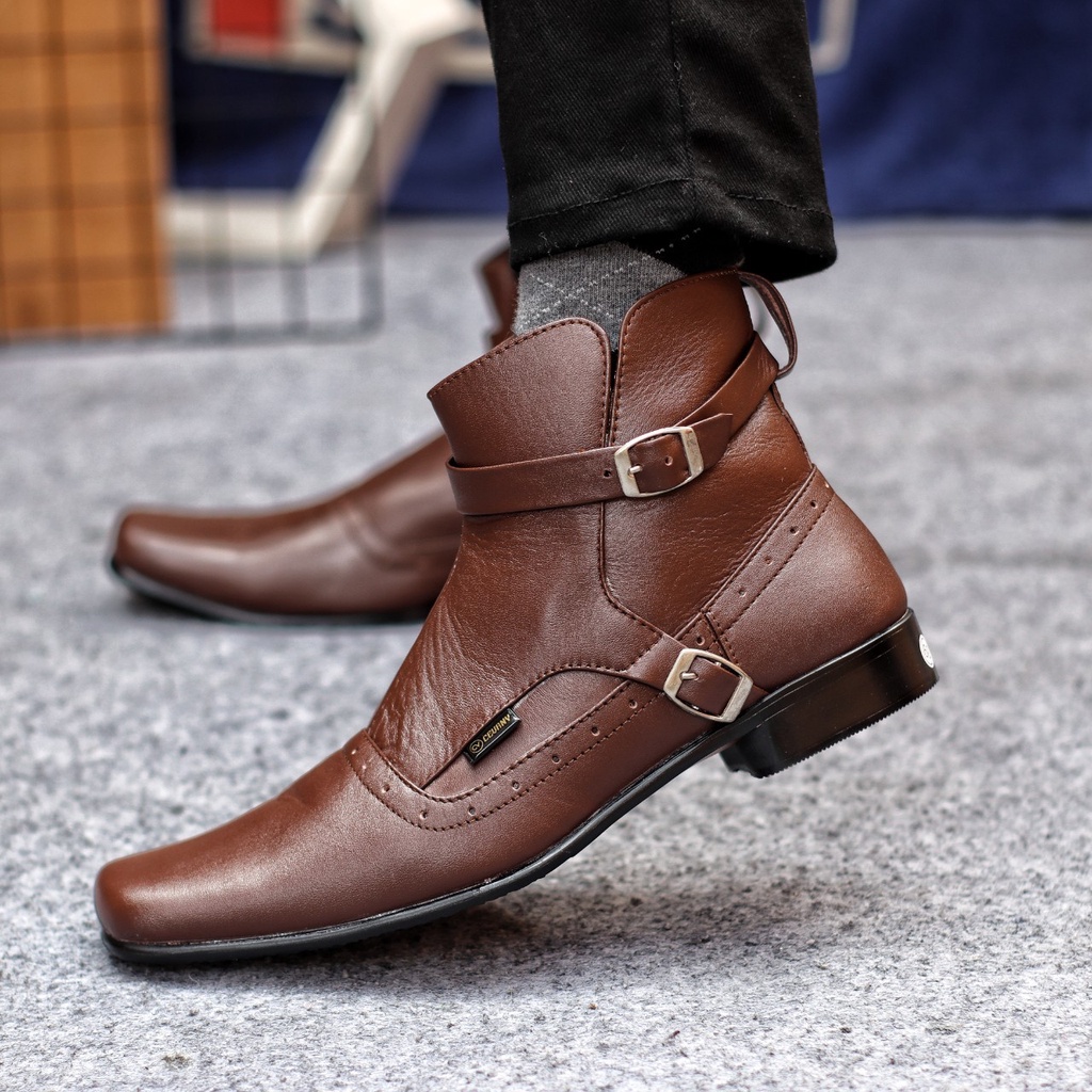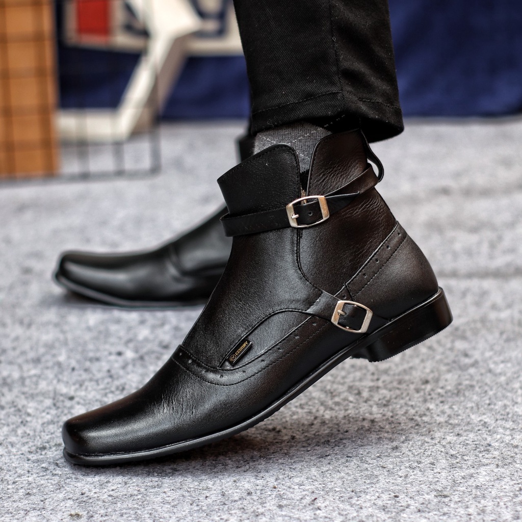 Sepatu Pantofel Pria Cevany Original Pantofel Monk Strap Hitam Coklat Tinggi Resleting Samping Kulit Asli High Hak 3 Cm Murah Cowok Keren Casual Formal Executive