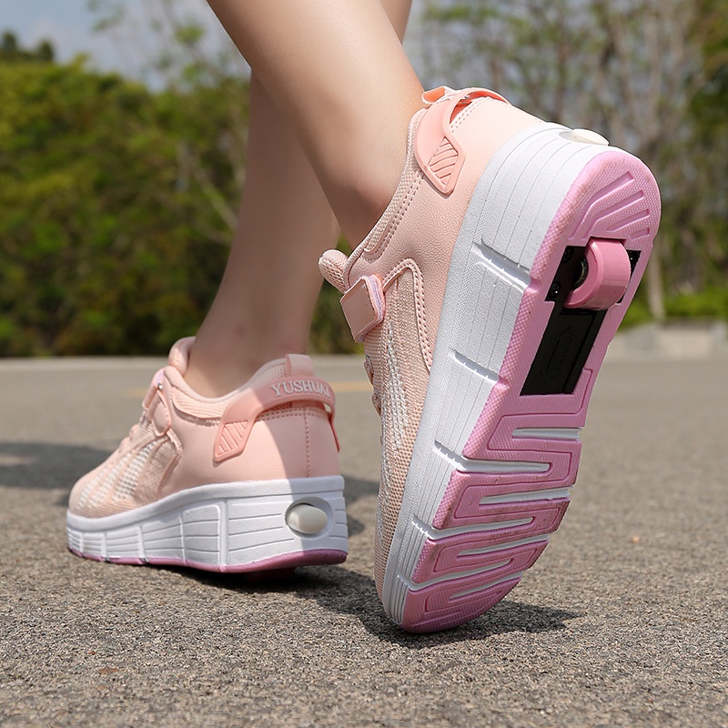 Sepatu Roda 2 Heelys Helis Lampu LED Menyala Charge anak berjalan sepatu ga roda pulley sepatu Single roda deformasi sepatu siswa New roda sepatu Pria woPria sepatu