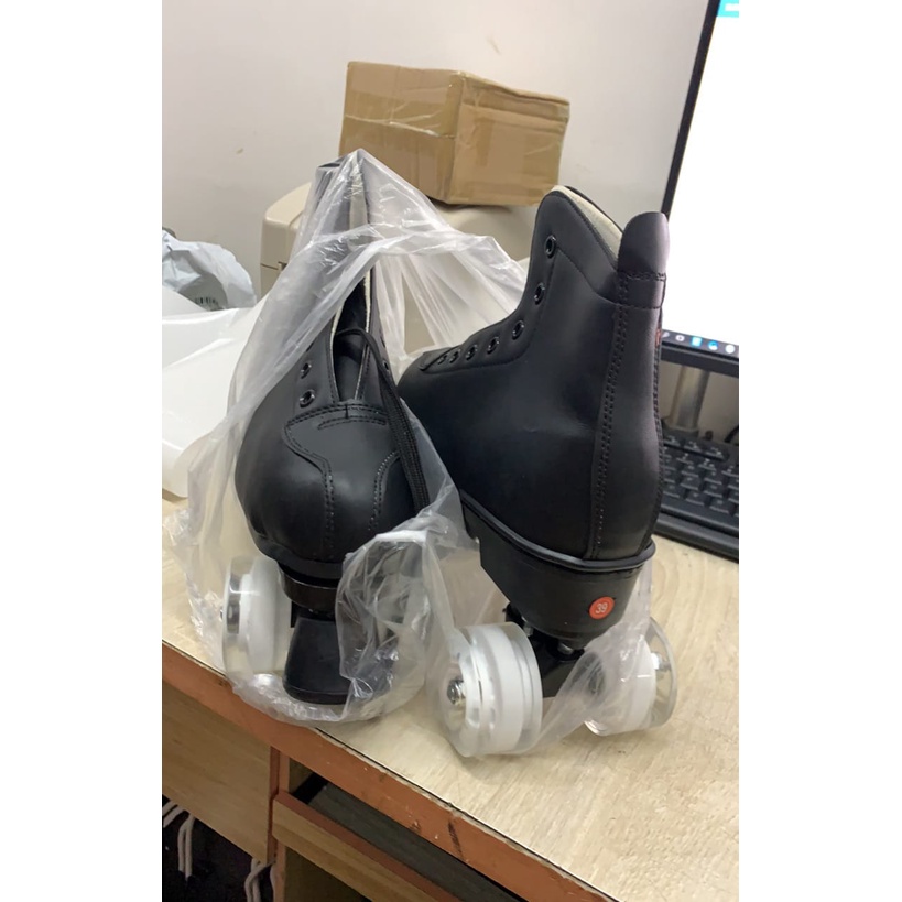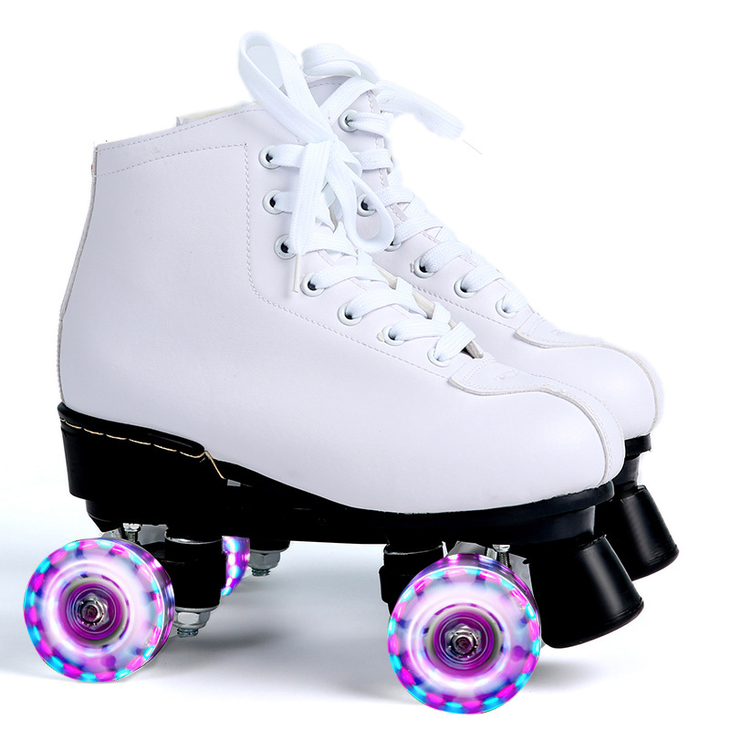 Sepatu Roda Empat Roda Kulit Double baris 4 roda skates roller pria dan wanita skates hitam dan puti