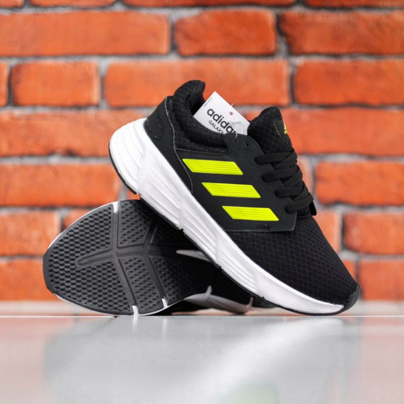 Sepatu Running Pria Wanita Adidas Galaxy 6 M Core Black Solar Yellow Carbon | Sepatu Olahraga | Sneakers | Best Seller