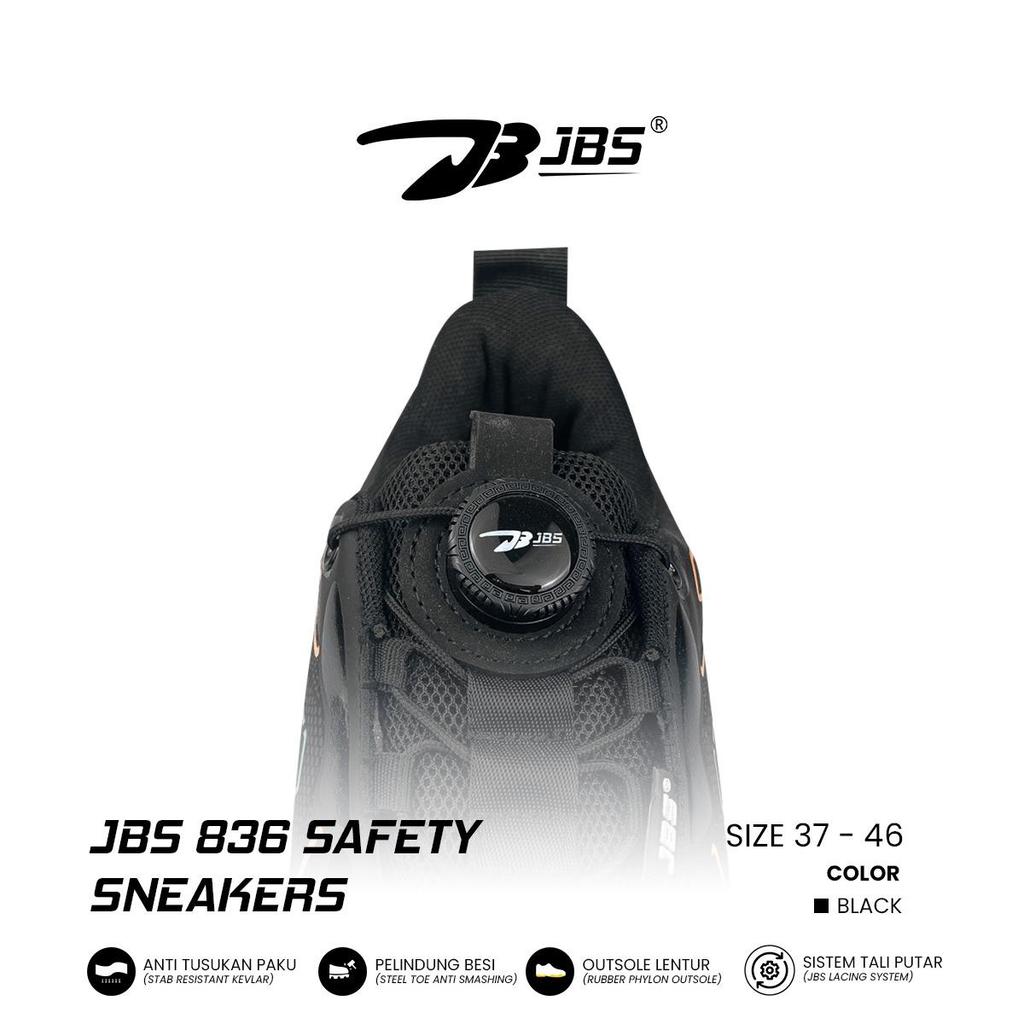 Sepatu Safety Sneakers Tali putar Ujung Besi / Sepatu JBS 836 Safety Sneakers Tali Putar / Sepatu Proyek Safety Sneakers Tali Putar 4 inch Anti Paku