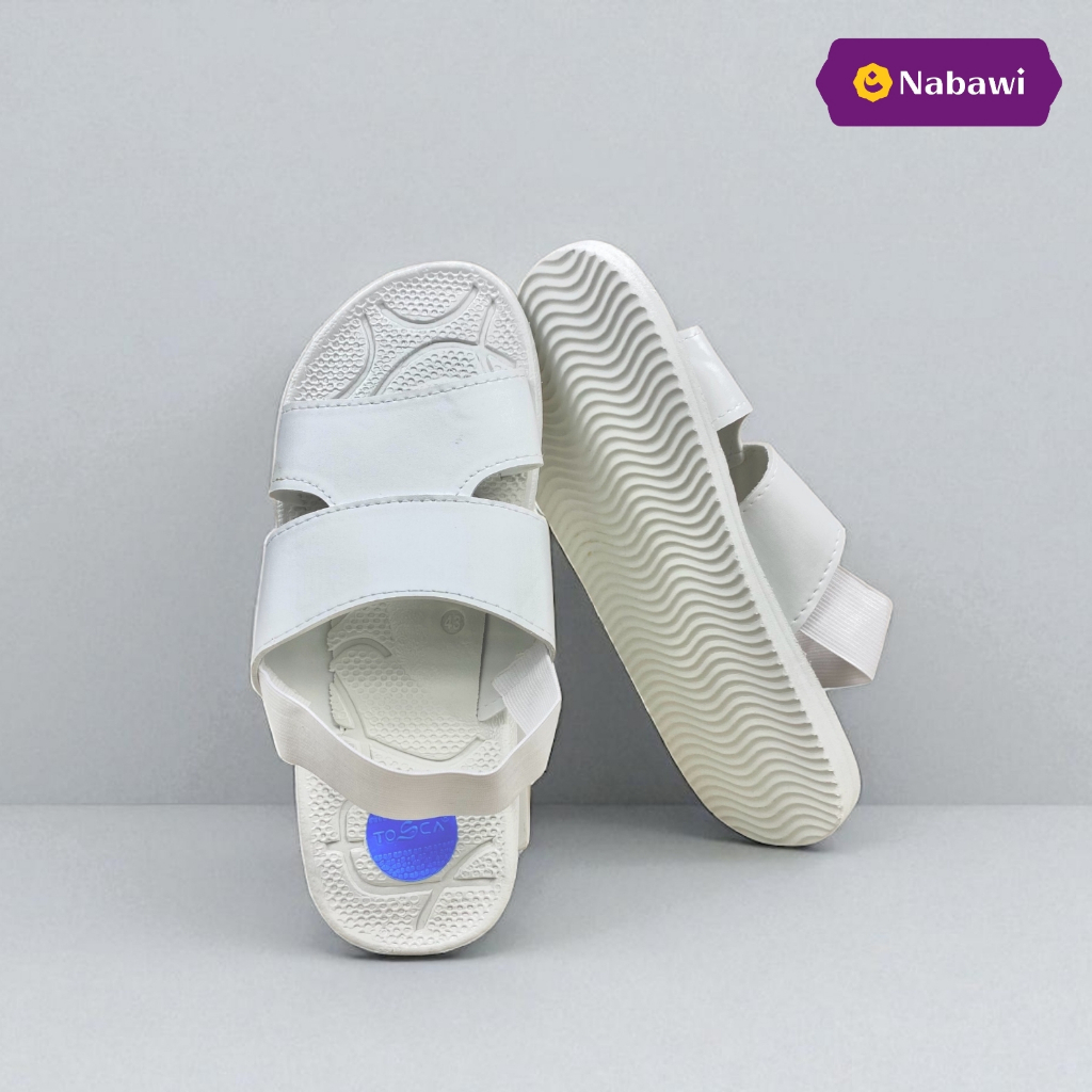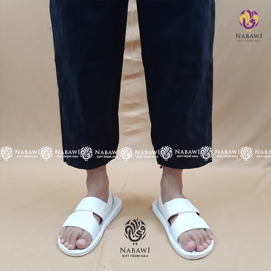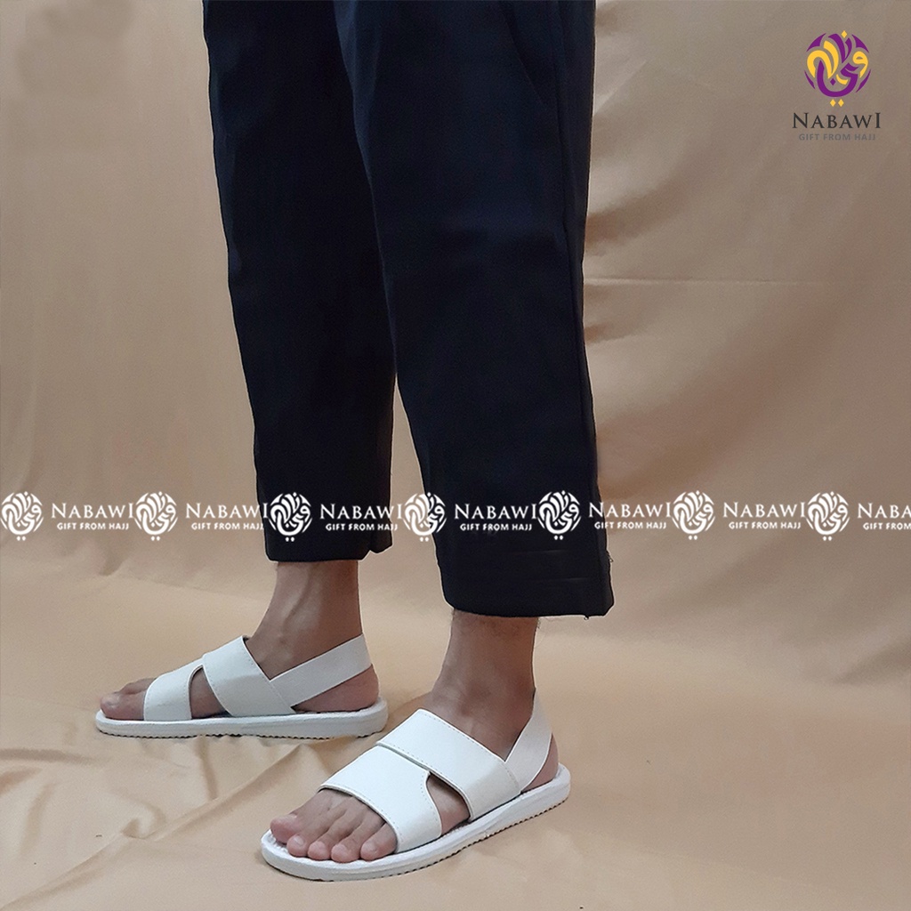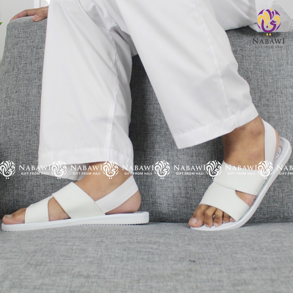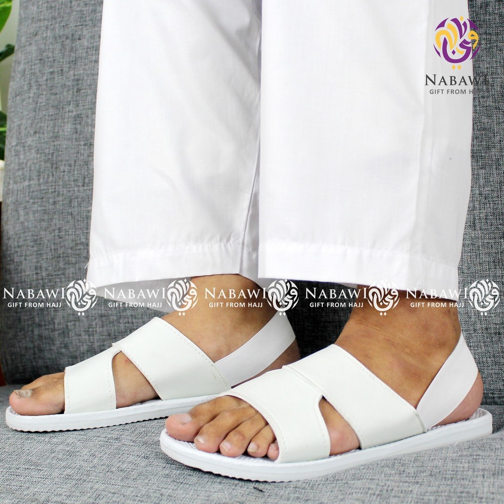 Sepatu Sandal Slop Haji Umroh Pria Spon Putih Polos Karet Perlengkapan Haji Perlengkapan Umroh