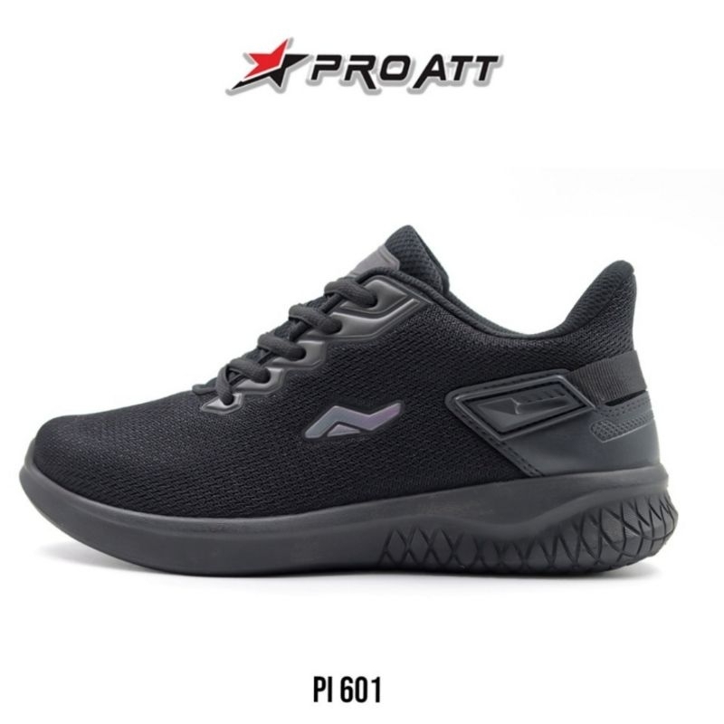 Sepatu Sekolah Kerja Hitam Putih Black Tali Polos Pro Att Pi 600 Original Sol Karet Size 39 sd 44