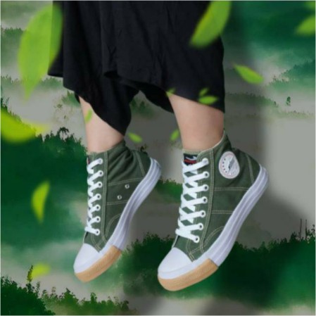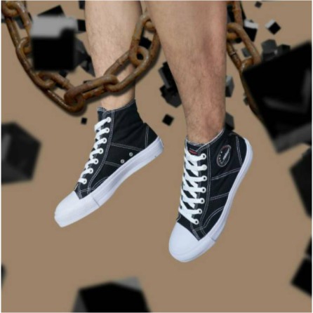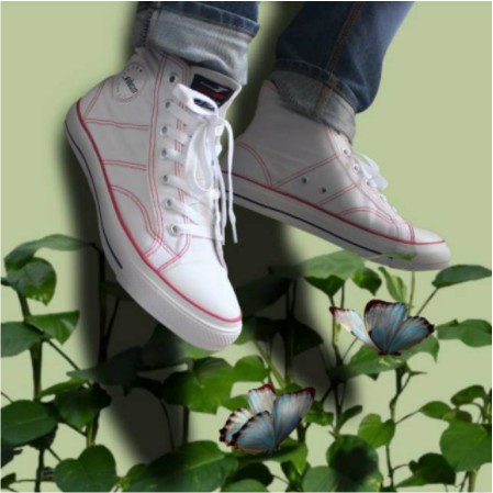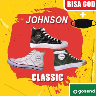 Sepatu Sneakers Casual Pria Johnson Classic High Cut (HC) Black White / Green / White Original