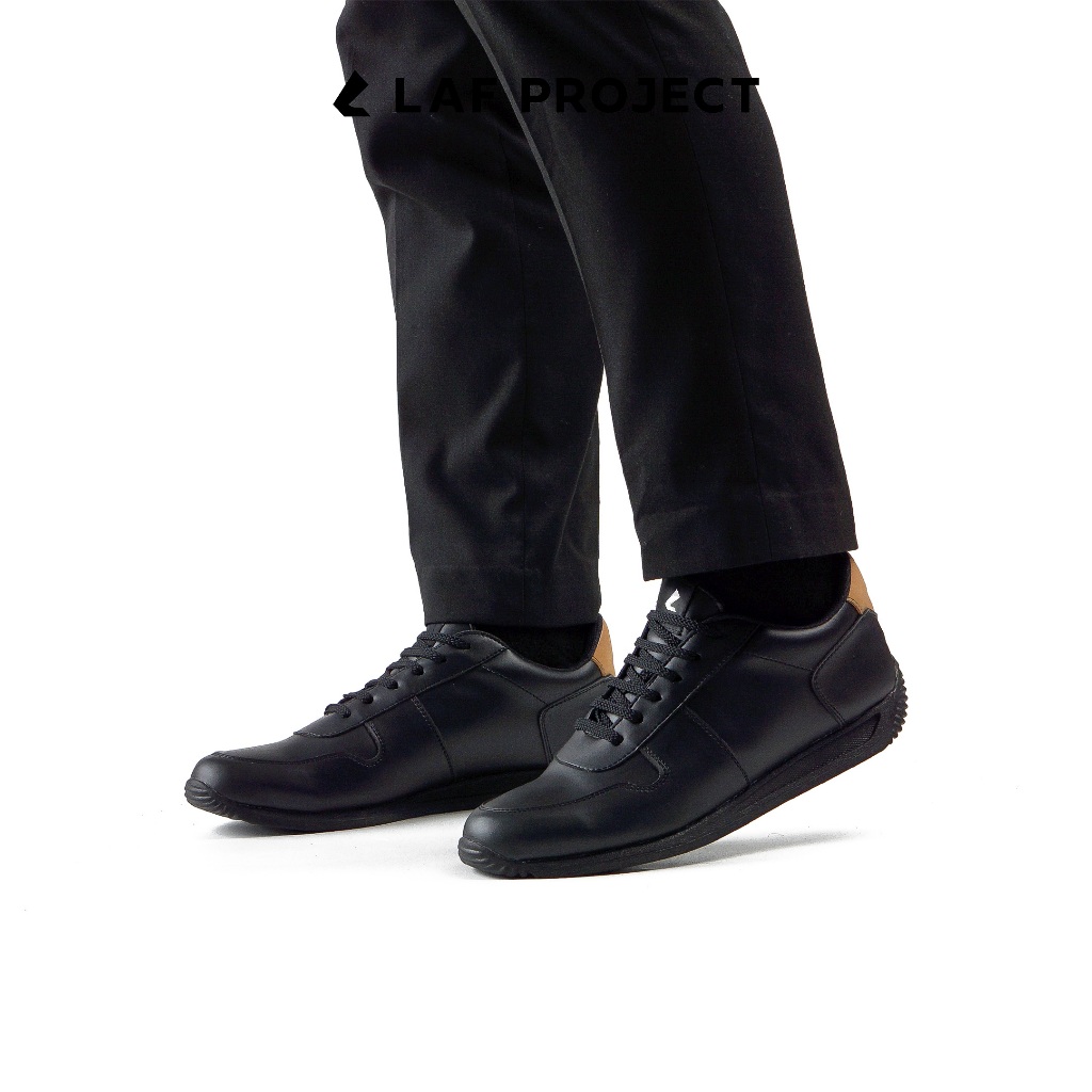 Sepatu Sneakers Pria Hitam Polos Casual Kerja Kantor Keren Original Premium Aruna LAF Project