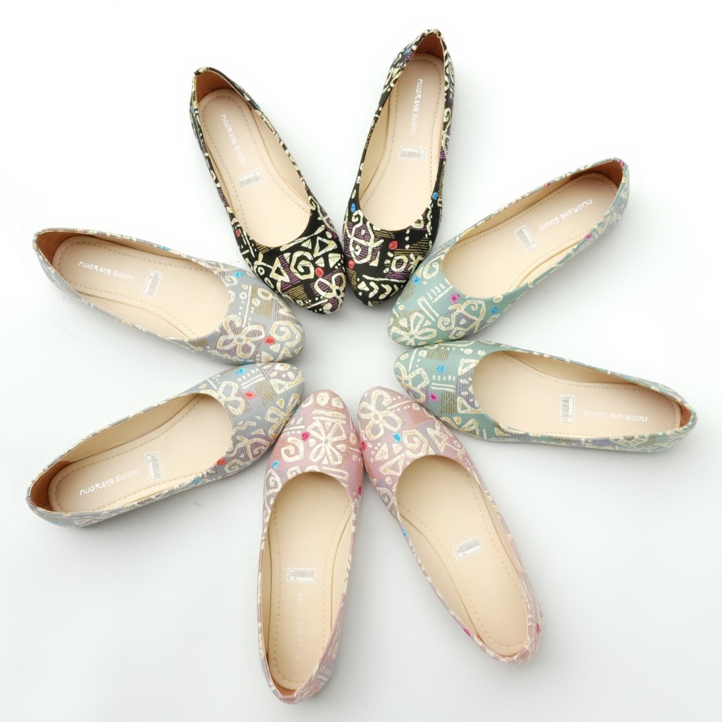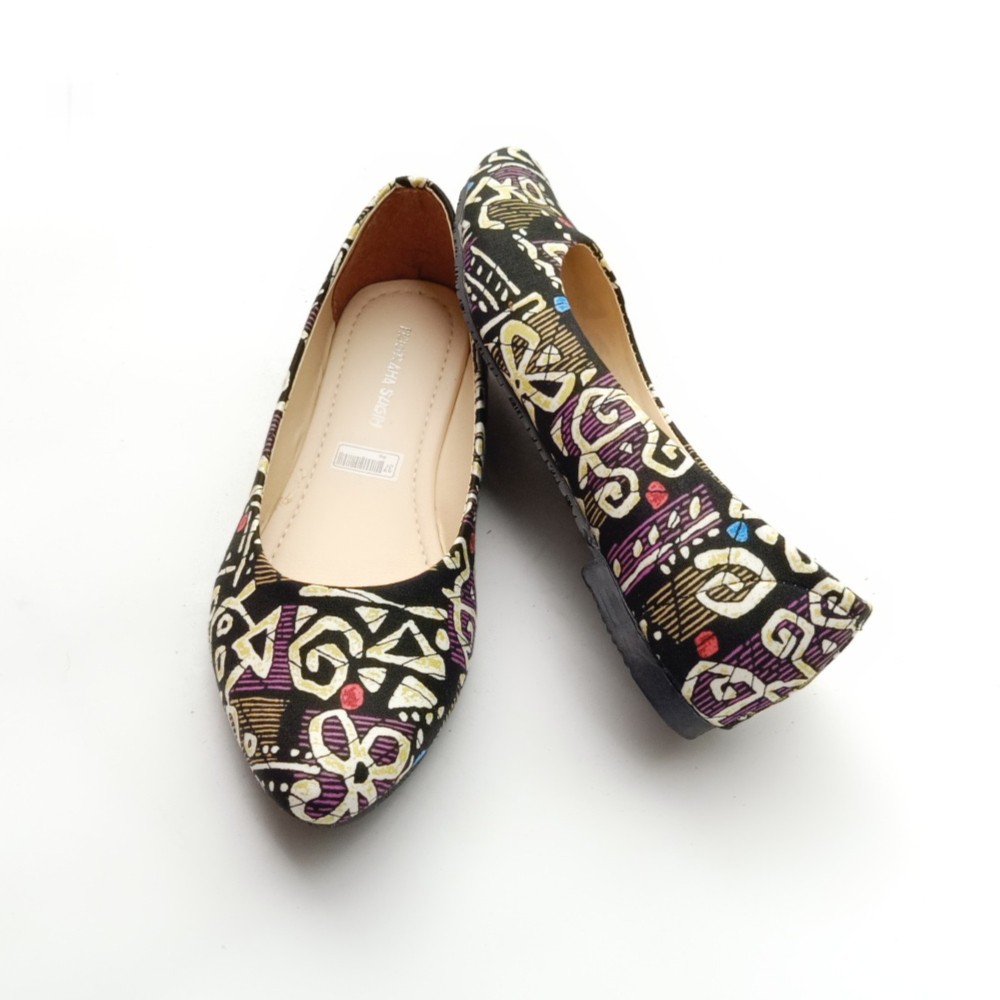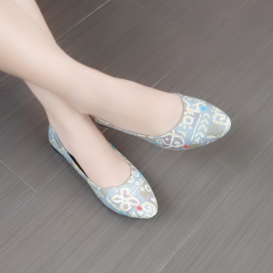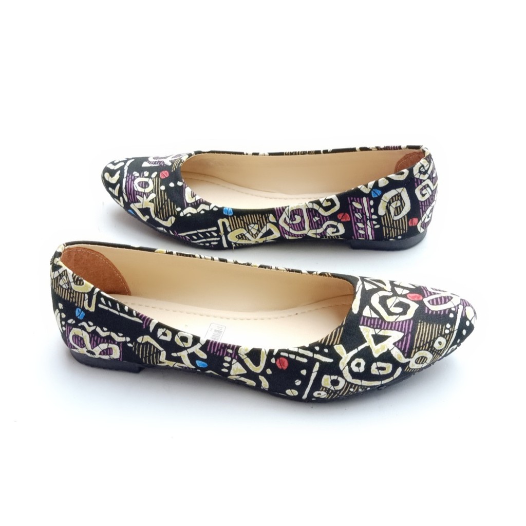 Sepatu Wanita Flats Shoes Motif Batik Pansus Pentopel Sepatu Kerja Wanita Sepatu Casual Wanita - B18
