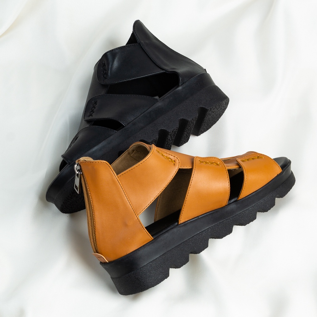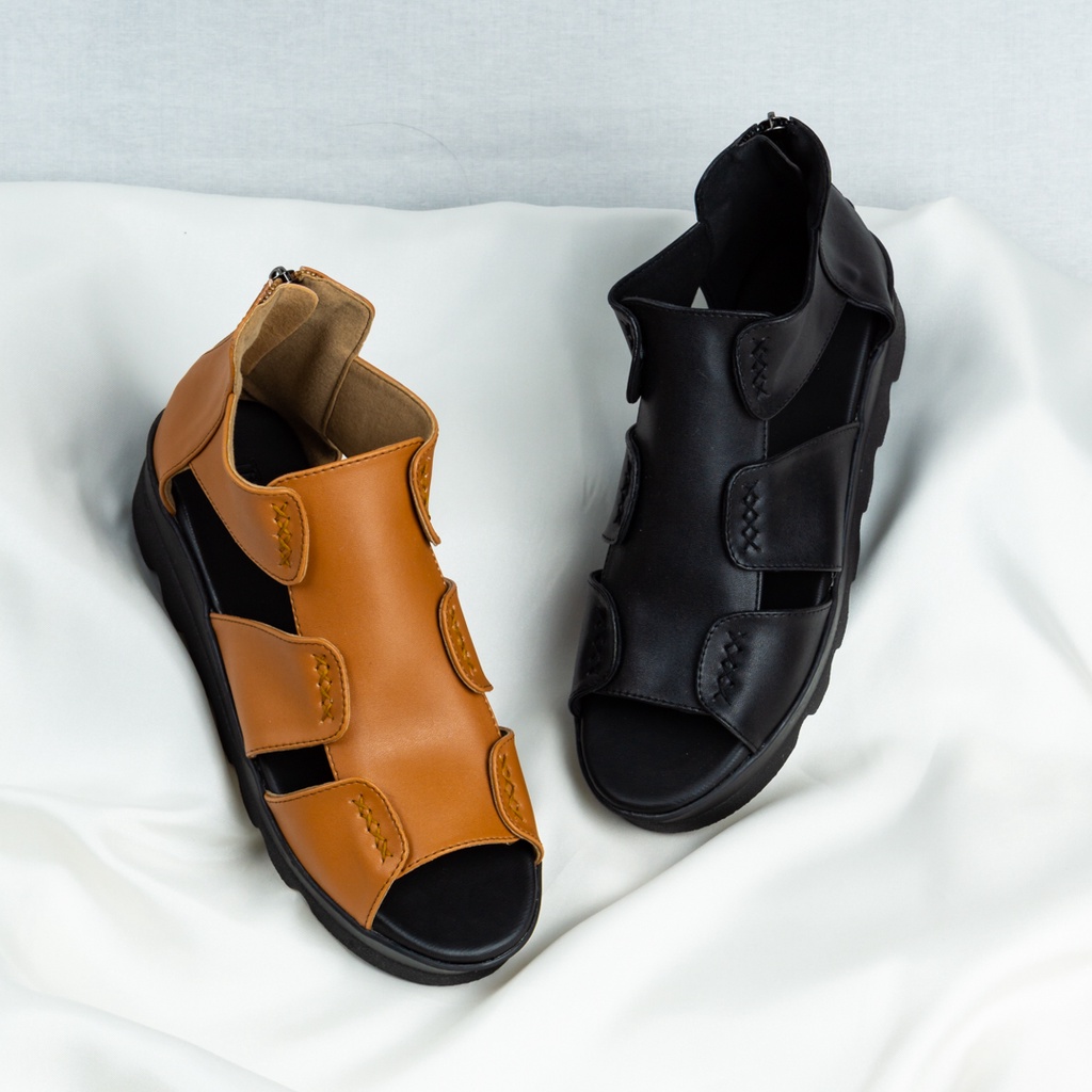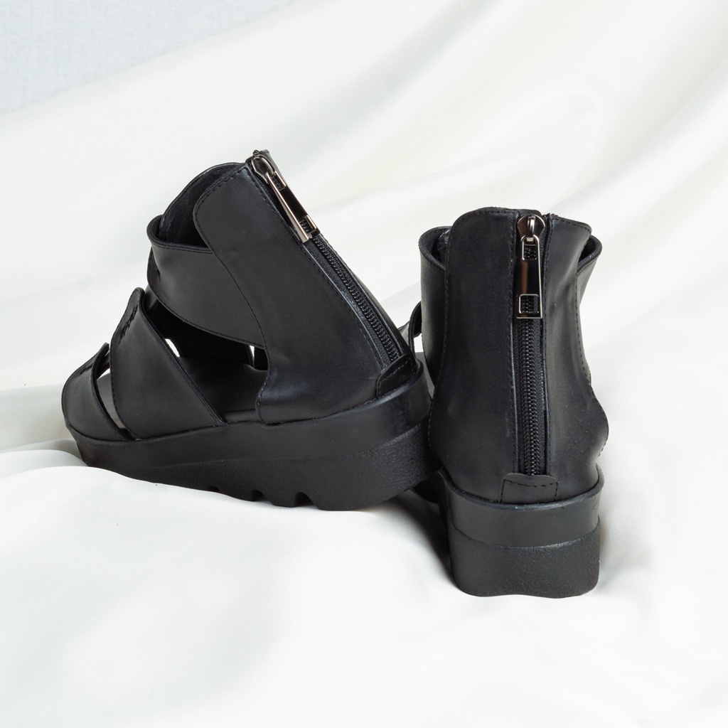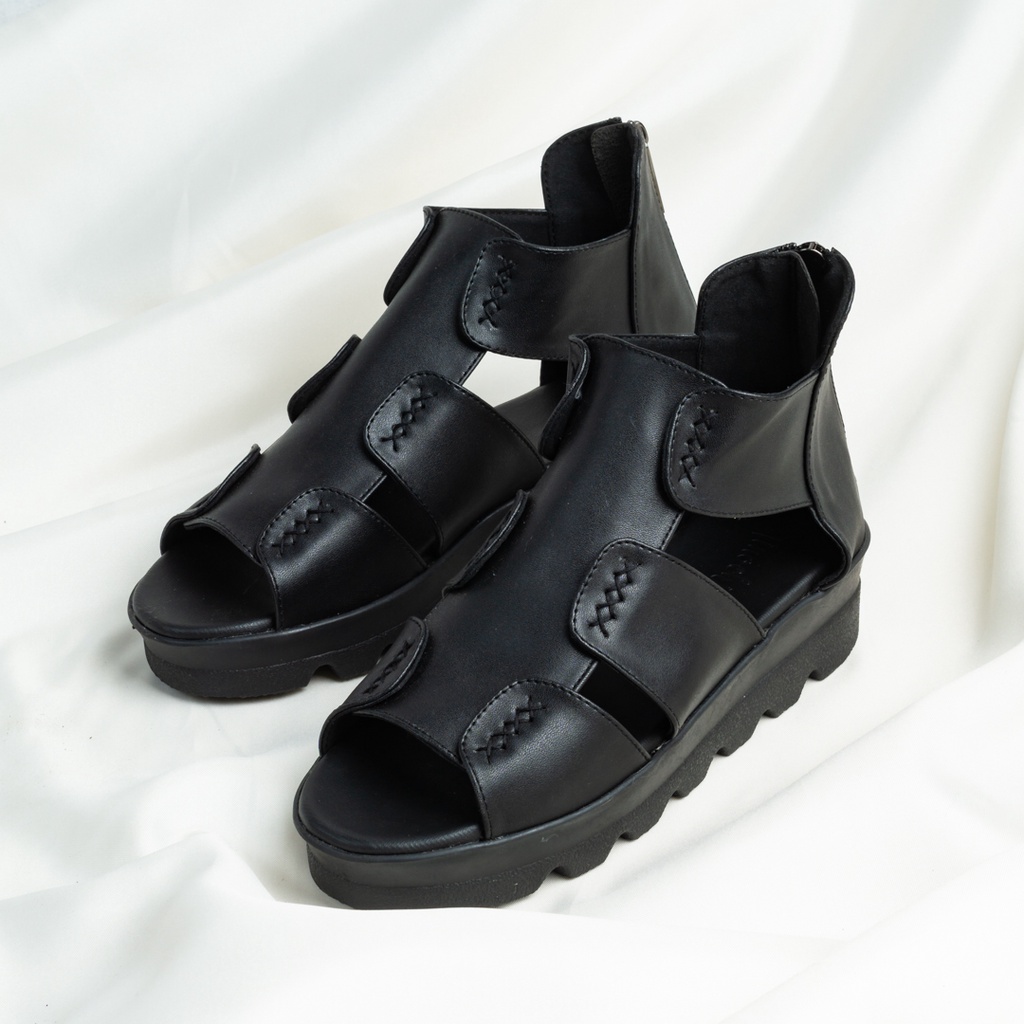 Sepatu Wedges Wanita / Sepatu Kulit Wedges / Sepatu Sandal Heels Kulit / Wedges Hitam Tinochi Pearly