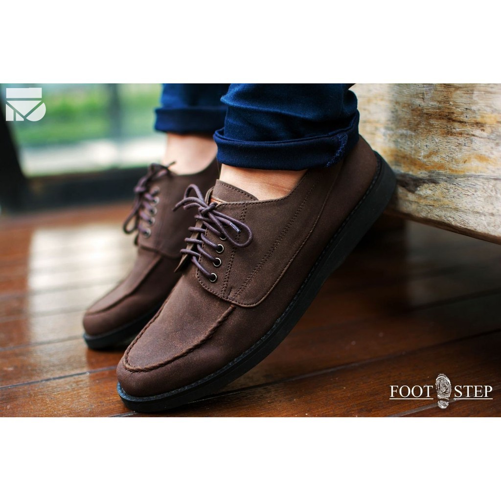 Sepatu kerja pria Ffstps low pantofel formal kerja kantor pria keren modis casual trendy suede sapi