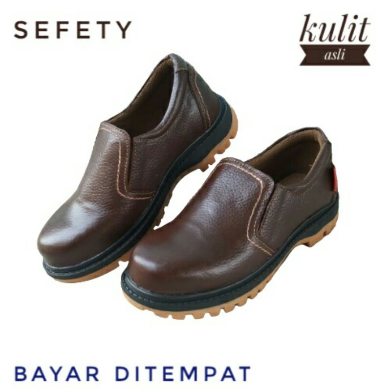 Sepatu safety kulit /sepatu pria /sepatu proyek /sepatu lapangan /sepatu slip on