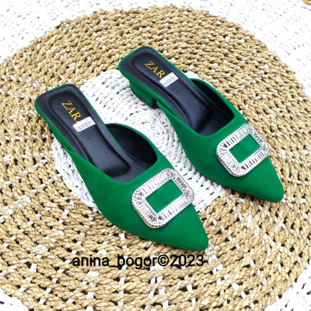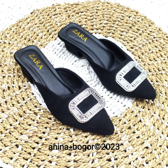 Sepatu selop heel wanita ZR-093/Sepatu heel selop wanita terbaru dan kekinian bahan bludru/suede