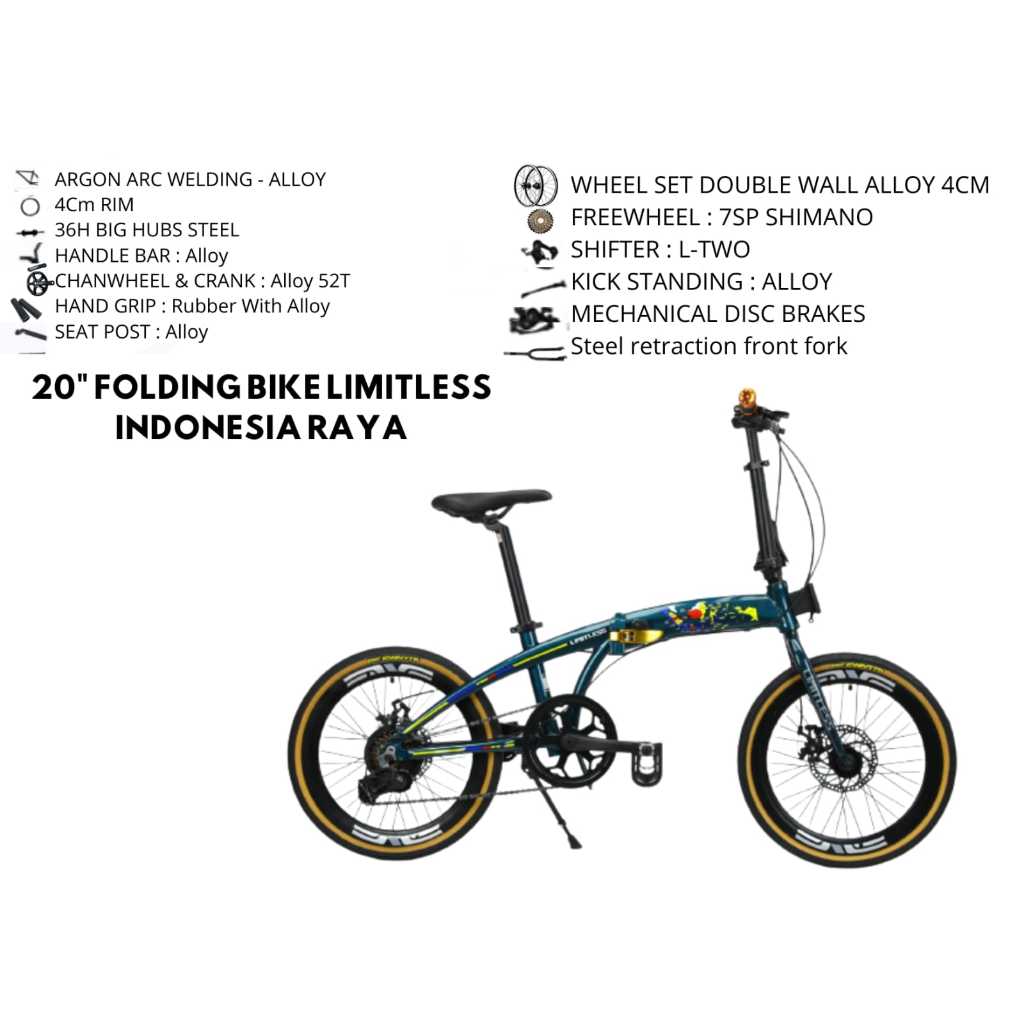 Sepeda 20 Folding Alloy Limitless 7SP Indonesia Raya / Sepeda Lipat