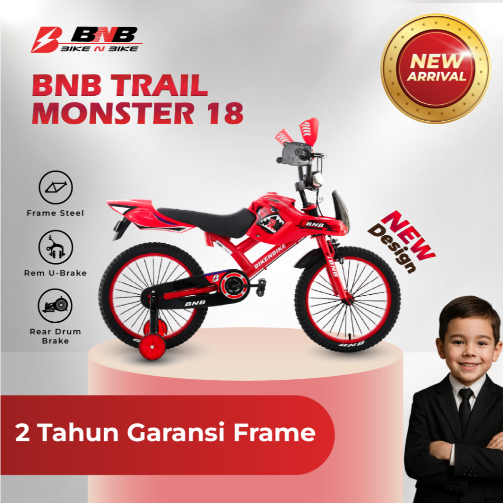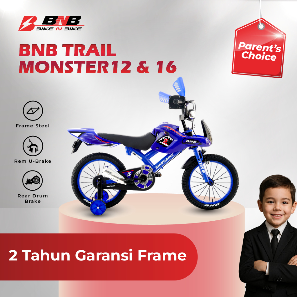 BikeNBike - Sepeda Anak Cowo Usia 3 - 10 Tahun Bmx Trail Monster Ukuran 12 16 18 inch