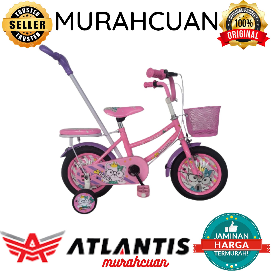 Sepeda Anak Perempuan 12 inch Atlantis Nabila Sepeda Anak Kecil Umur 2-4 Tahun Ban Eva Dan Dorongan