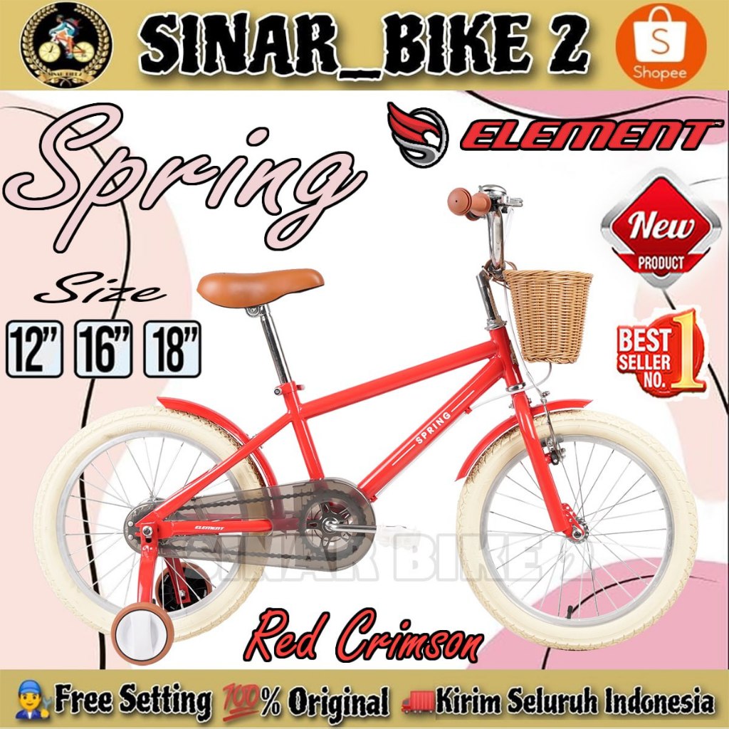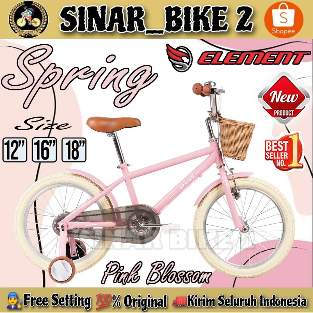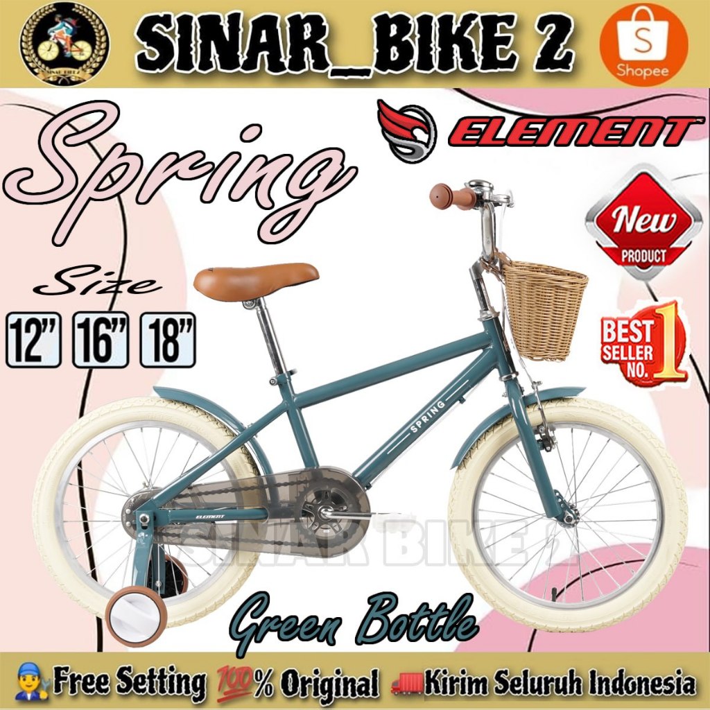 Sepeda Anak Perempuan BNB DAISY 16 Inch Vintage // ELEMENT KIDS BIKE SPRING NEW COLOR Keranjang Ukuran 12 16 18 inch Usia 2-8 Tahun