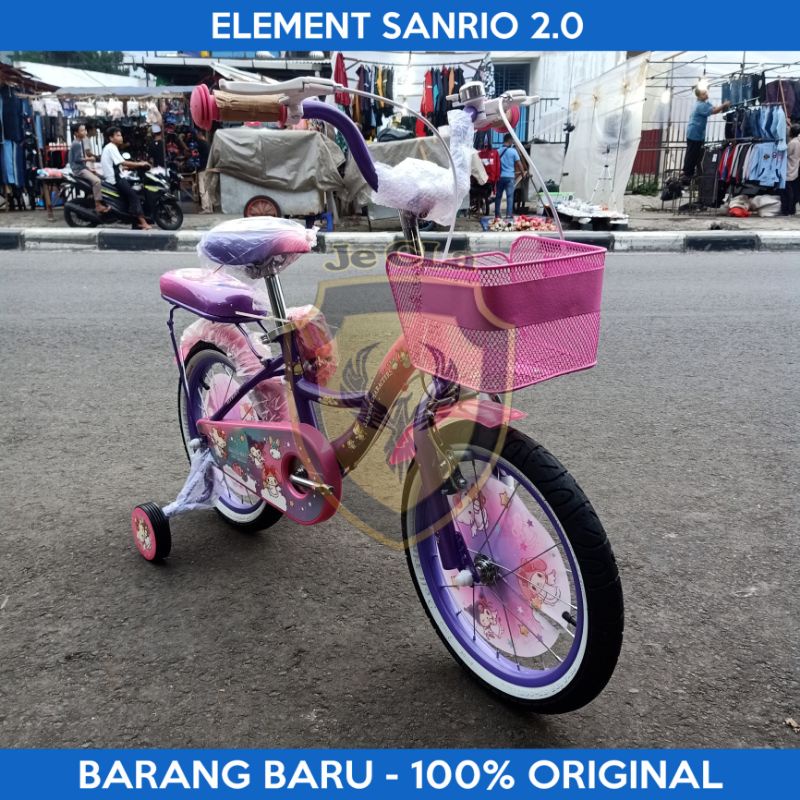 Sepeda Anak Perempuan Cewek Roda 4 Empat Mini ELEMENT SANRIO 2.0 HELLO KITTY 12 16 18 Inch Garansi Resmi
