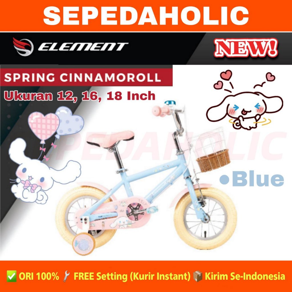 Sepeda Anak Perempuan ELEMENT SPRING CINNAMOROLL Keranjang Ukuran 12 16 18 Inch Usia 2-8 Tahun