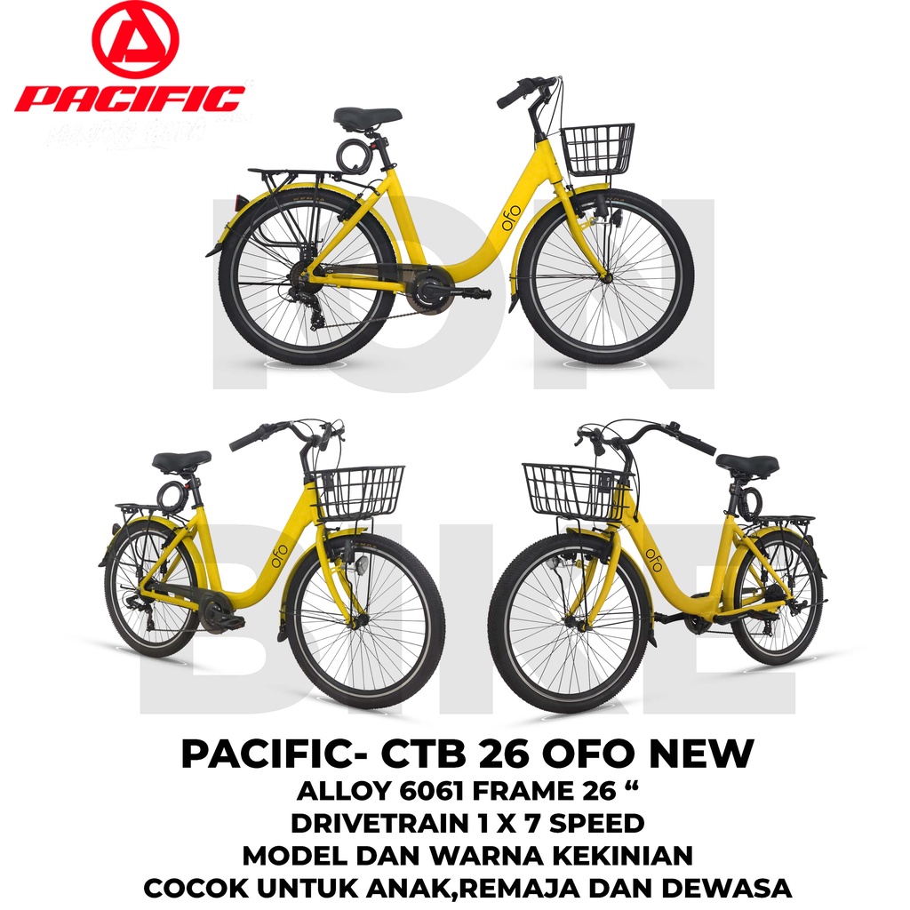 Sepeda City Bike 26 Pacific OFO Alloy Mini Classic Commuter Vintage Wanita Cewek Ibu CTB Mini Murah Awet Allumunium