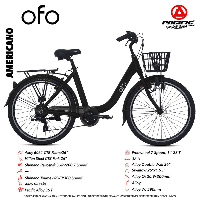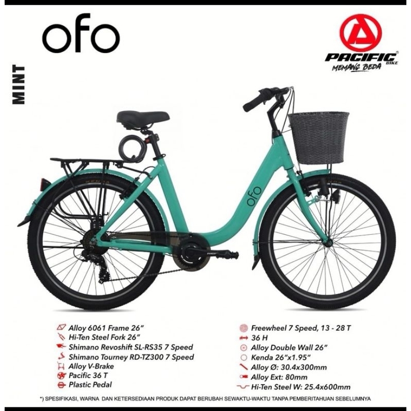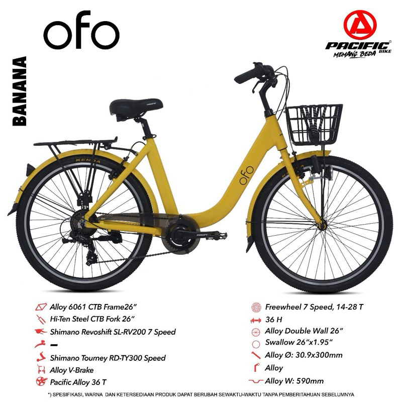 Sepeda City Bike Perempuan Ukuran 26 Pacific OFO 7 Speed Shimano Murah / Sepeda CTB Keranjang Perempuan Ukuran 26 Pacific OFO 8 Speed Murah
