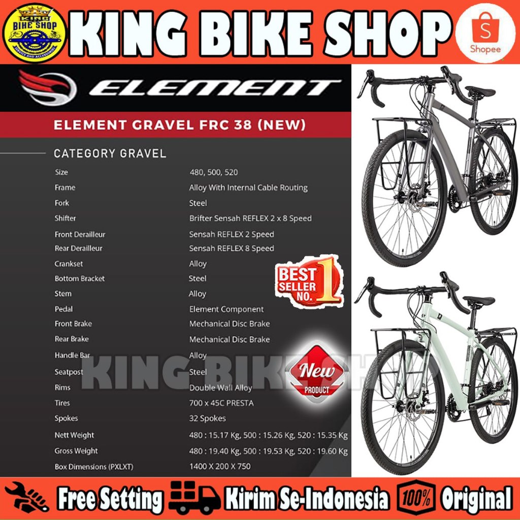 Sepeda Gravel ELEMENT FRC 38 NEW Alloy 2x8 Speed