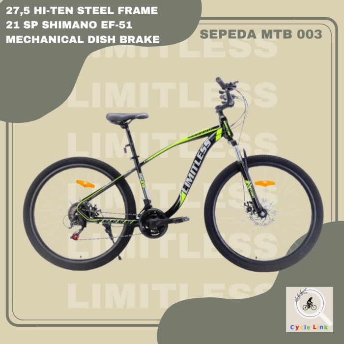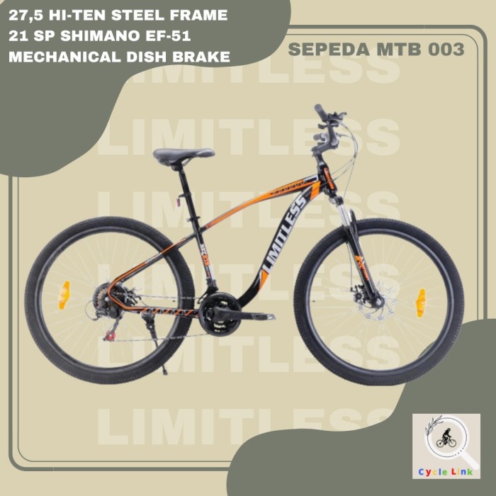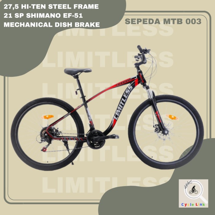 Sepeda Gunung 003 Limitless Dewasa 27,5 27.5 MTB Steel 21 Speed Shimano Besi