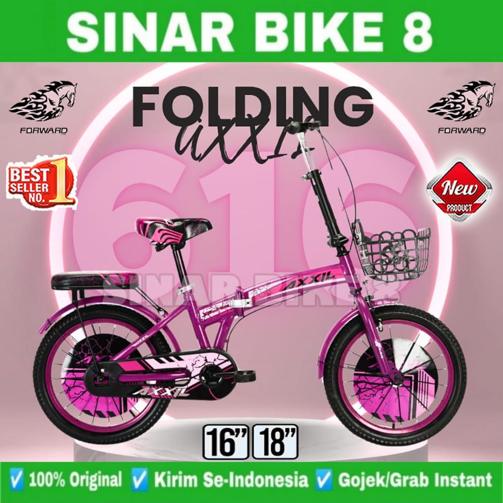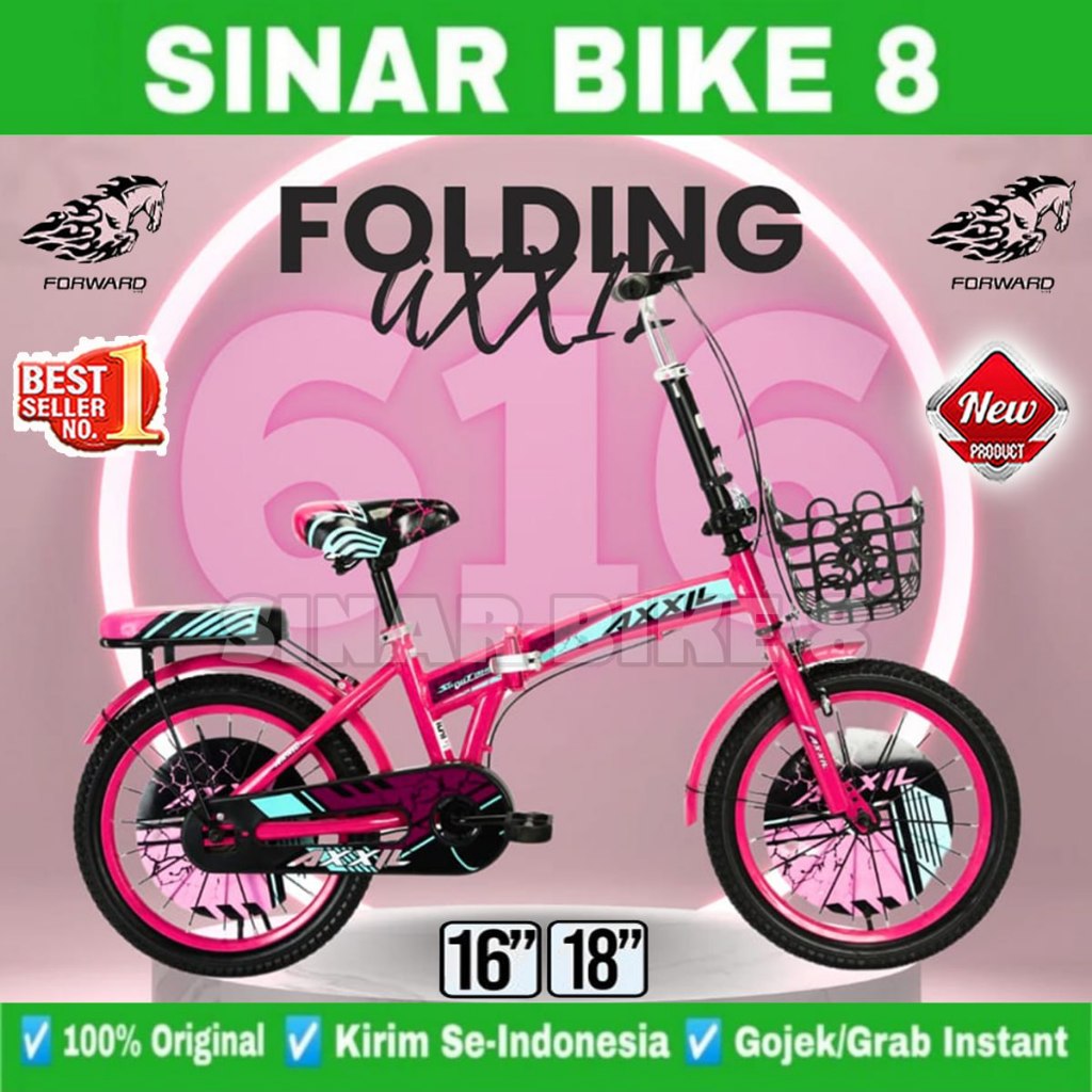 Sepeda Lipat Anak Ukuran 16 18 Inch VELION V7 dan AXXIL 616 Usia 4-8 Tahun Keranjang Laki Perempuan