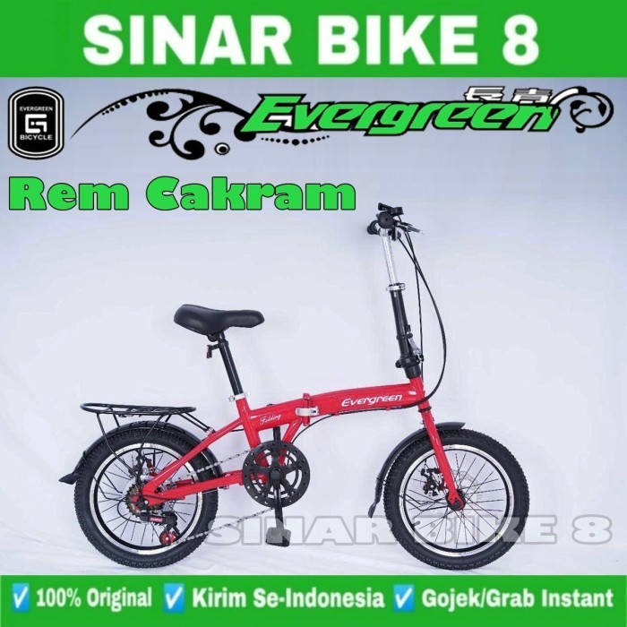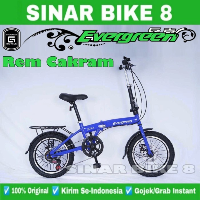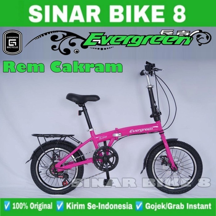 Sepeda Lipat EVERGREEN DB Ukuran 16 Inch Boncengan Rem Cakram 6 Speed