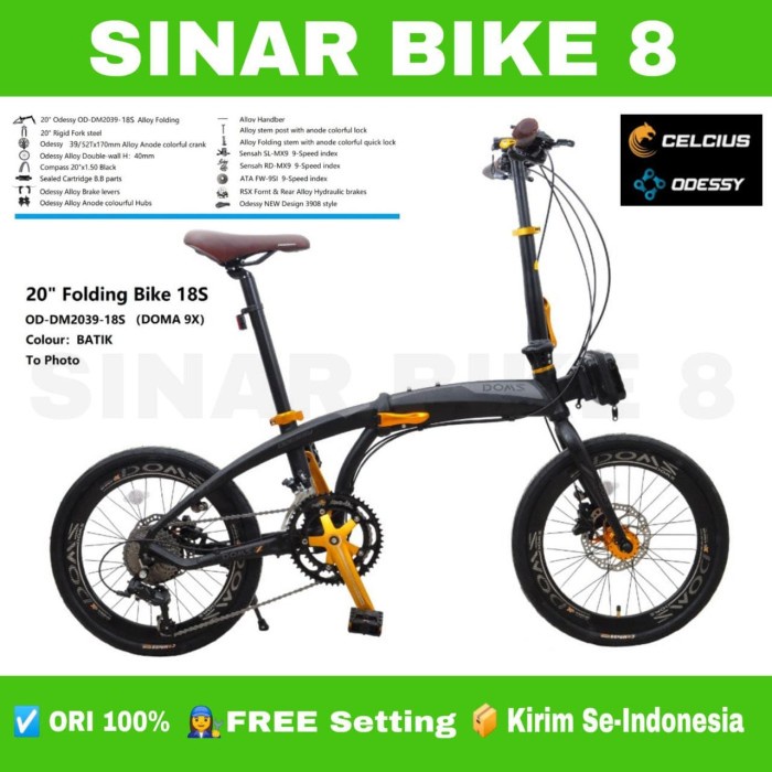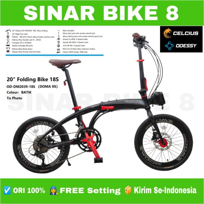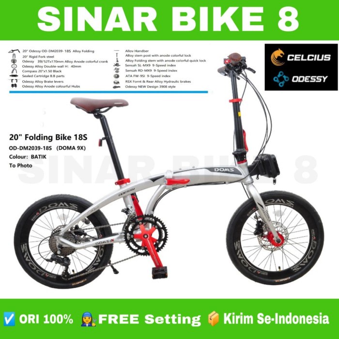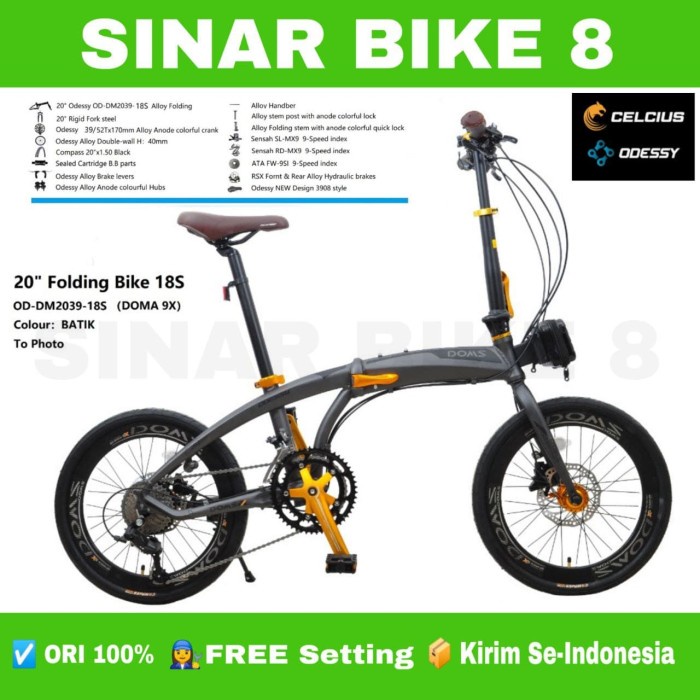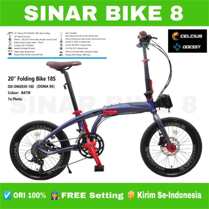 Sepeda Lipat Ukuran 20 Inch ODESSY DOMS 9X 18 Speed Alloy Rem Hidrolik