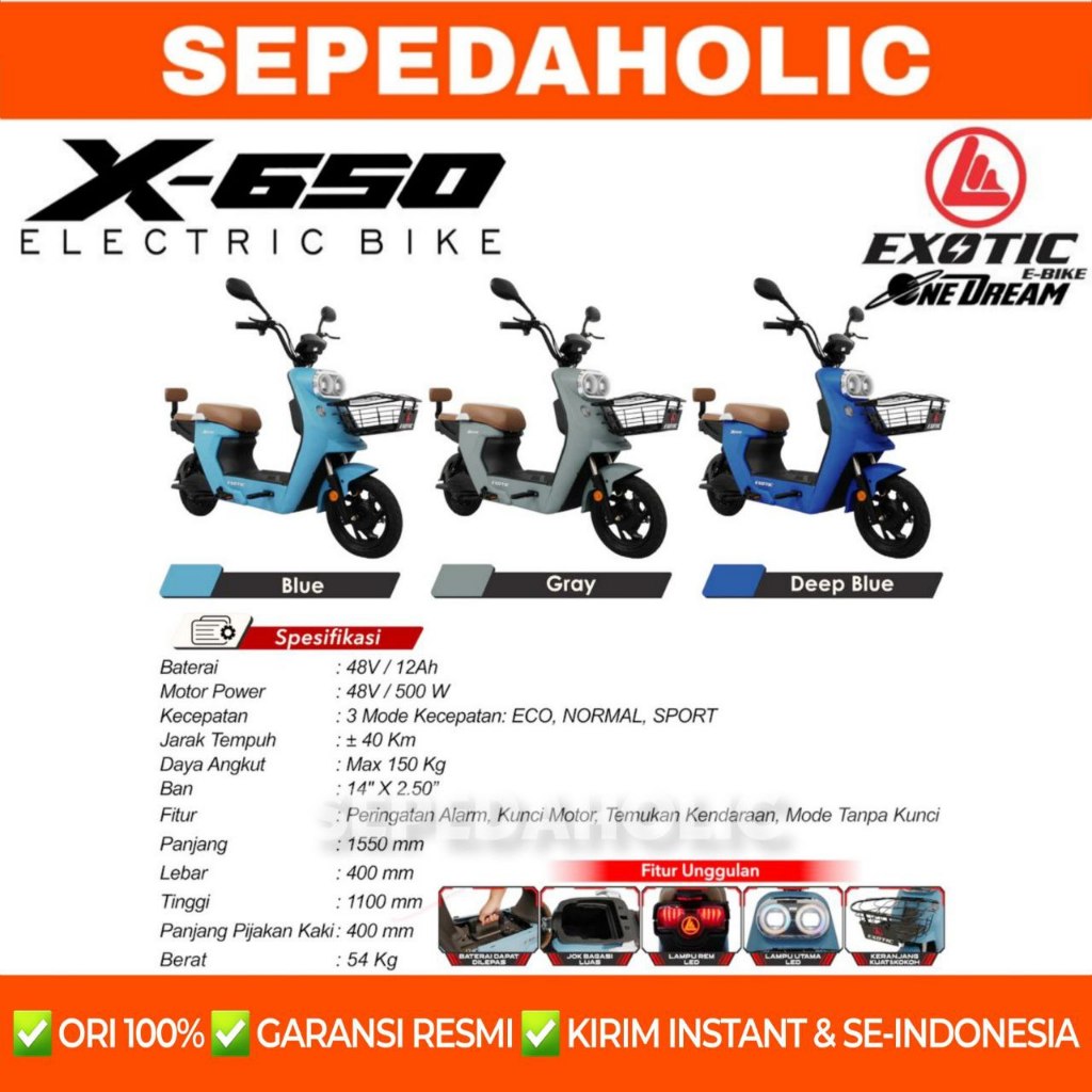 Sepeda Listrik EXOTIC X650 X 650 BY PACIFIC 500 Watt Electric E Bike
